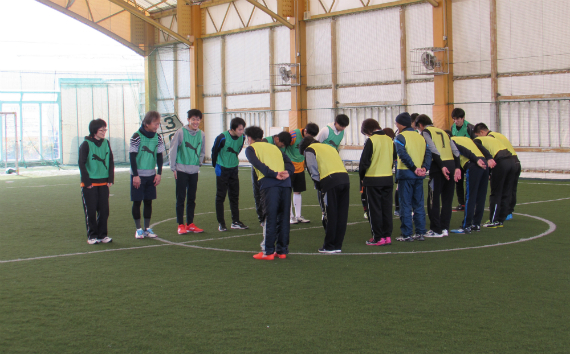 また途中から、恒例のローカルルールを増やして試合を行いました。GKを人からコーンへ変更し、各チームでゴール前にシュートが来そうな場所へコーンを配置し、相手シュートがコーンに当たったら無得点「通称:ナイス!コーンキーパー君!」、女性へのプレッシャー禁止といった「レディーファースト」ルールを設けると、積極的なシュート場面が増え、また「コーンキーパー君」のナイスセーブもあり、盛り上がりをみせました。