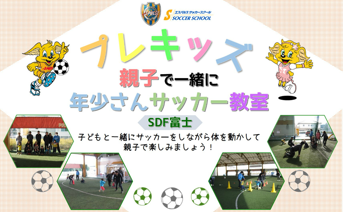 清水エスパルスは3月16日(土)と3月24日(日)にエスパルスドリームフィールド富士にて、年少児の子ども1名と保護者1名の親子を対象とした『プレキッズ 親子で一緒に年少さんサッカー教室』を開催いたします。つきましては、参加者を募集いたしますので下記の通りお知らせいたします。たくさんの皆様のご参加をお待ちしております。