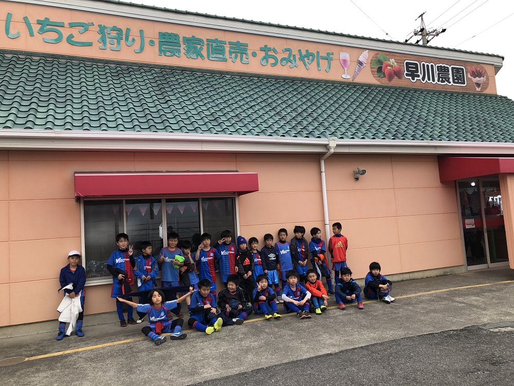交流戦の前にヴァンフォーレ甲府スクール生は、いつもお世話になっている早川農園様(静岡市駿河区)に立ち寄り、いちご狩りを行っていました。