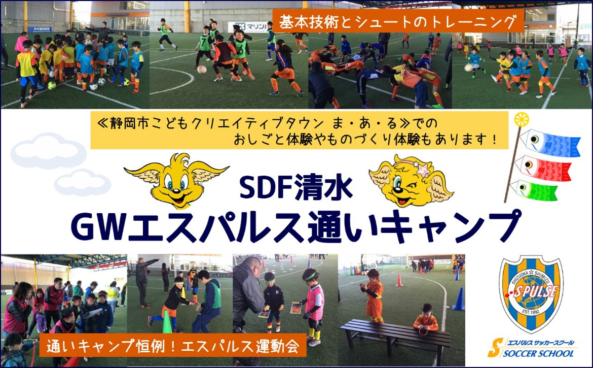 清水エスパルス/エスパルスサッカースクール清水は、5月3日(金祝)・4日(土祝)・5日(日祝)にエスパルスドリームフィールド清水にて、小学1〜3年生を対象とした『GWエスパルス通いキャンプ』を開催いたします。つきましては参加者を募集いたしますので下記の通りお知らせします。