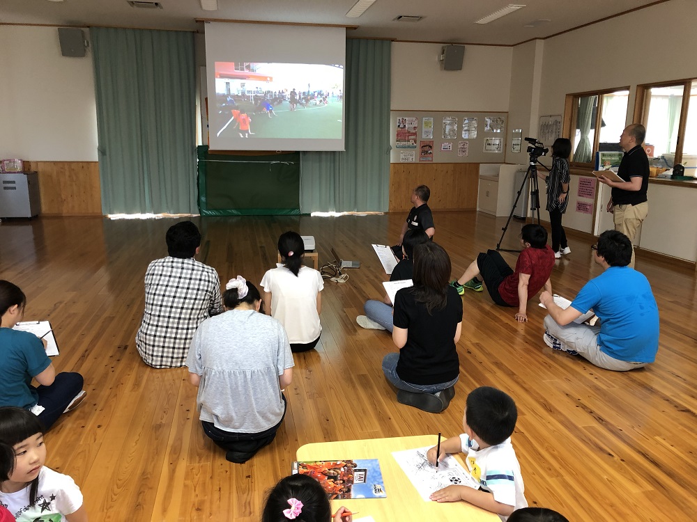 最後の講義では、保護者の皆様に「保護者が食べないものは、食卓に並びません。保護者が運動を嫌うと子どもたちも運動嫌いになります。是非、積極的に少しの時間でいいので子どもと一緒に運動遊びをしてスキンシップを取ってください。」とエスパルスからメッセージを送り、運動教室は無事終了となりました。
