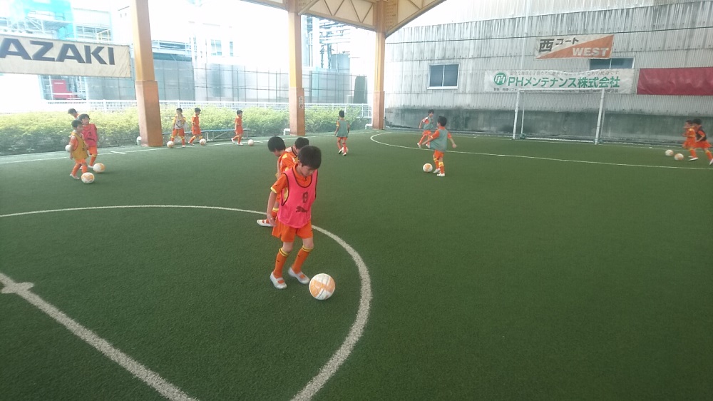 最後のゲームでは、相手の動き方や空いているスペースを観ることができ、素早いドリブルからシュートまで持ち込むことができた子どもたちも多かったです。またボールの置き所が良くなったため、周りの選手を使う動きが自然と出てきたり、ドリブルから次のアクションに繋がる動きも出てきたりしました。2時間のトレーニングでしたが、たくさんの子どもたちがゲームの中で積極的にチャレンジする姿は非常に良かったと感じました。
