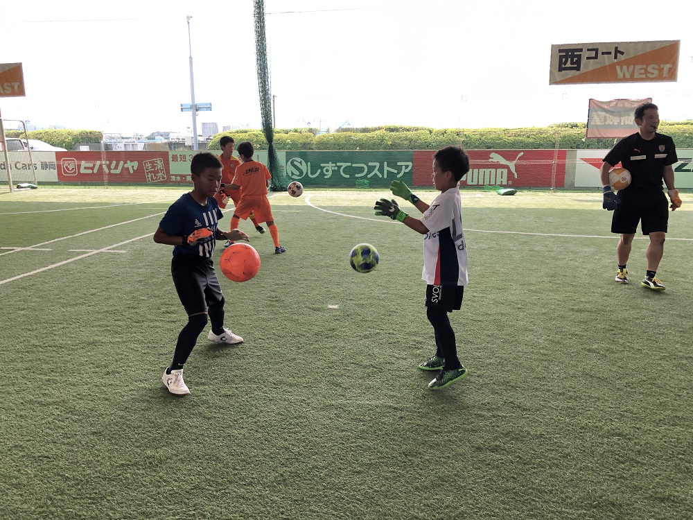 8月3日(土)にエスパルスドリームフィールド清水にて、GWに続き今年度第二回目となる『シュート&ゴールキーパー集中トレーニング』を開催しました。当日はスクール生11名と一般11名の22名に参加いただき、ゴールキーパーとシュートに特化したトレーニングを行いました。