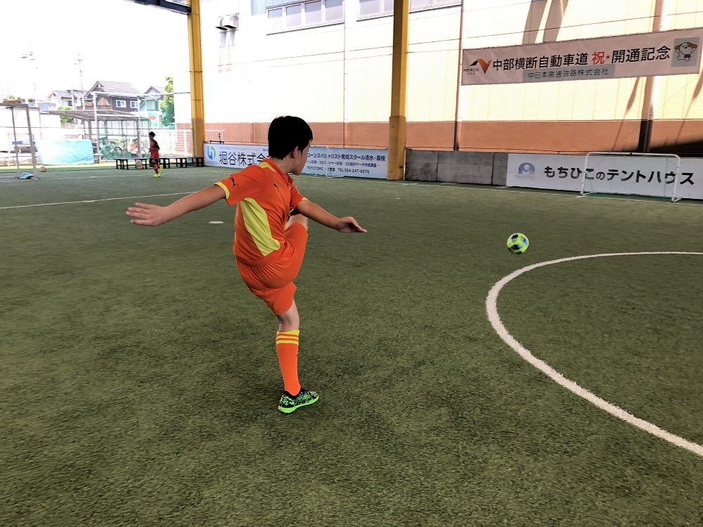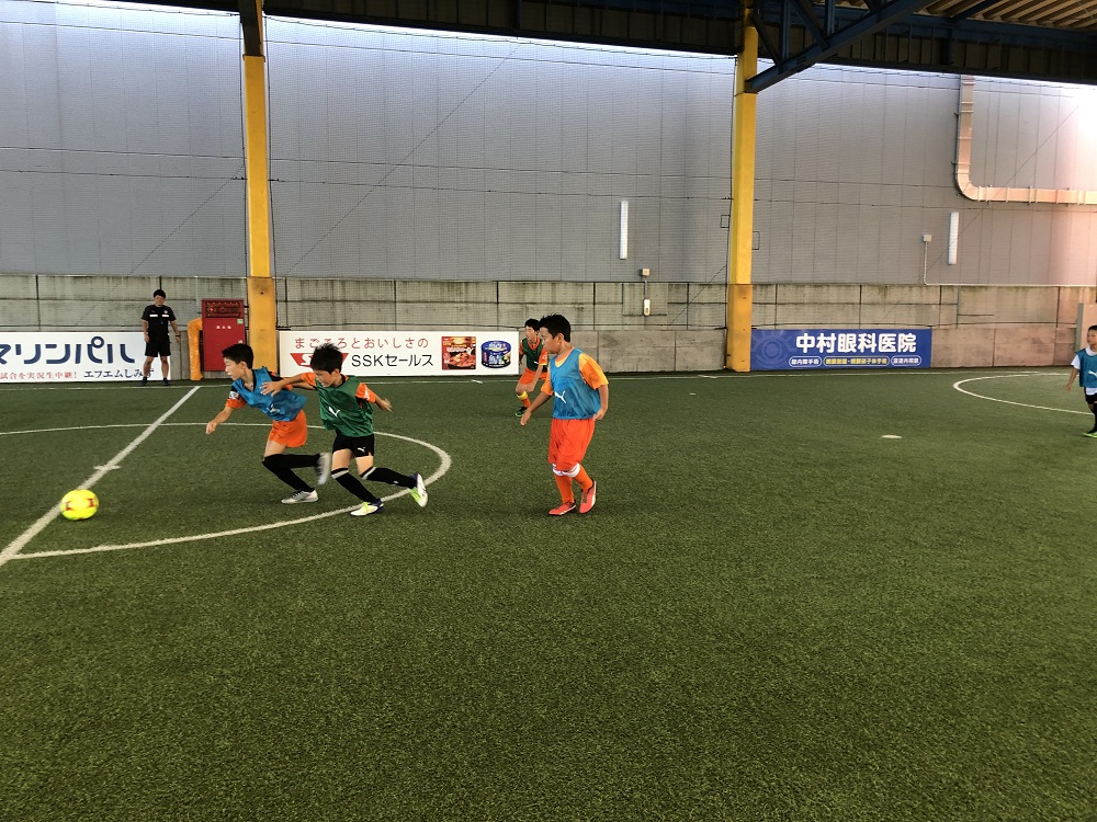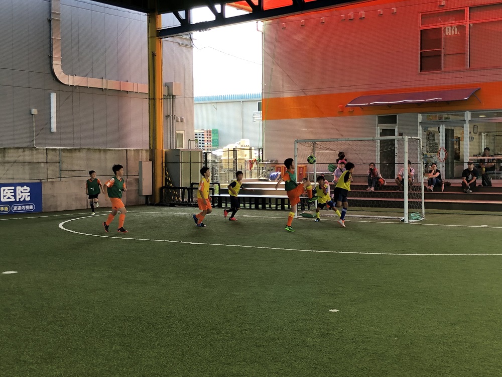 ゴールキーパートレーニングでは、マットを使い倒れることへの恐怖心をなくしセービングのトレーニングを行いました。ギリギリのところでセーブができるととても楽しそうでした。
