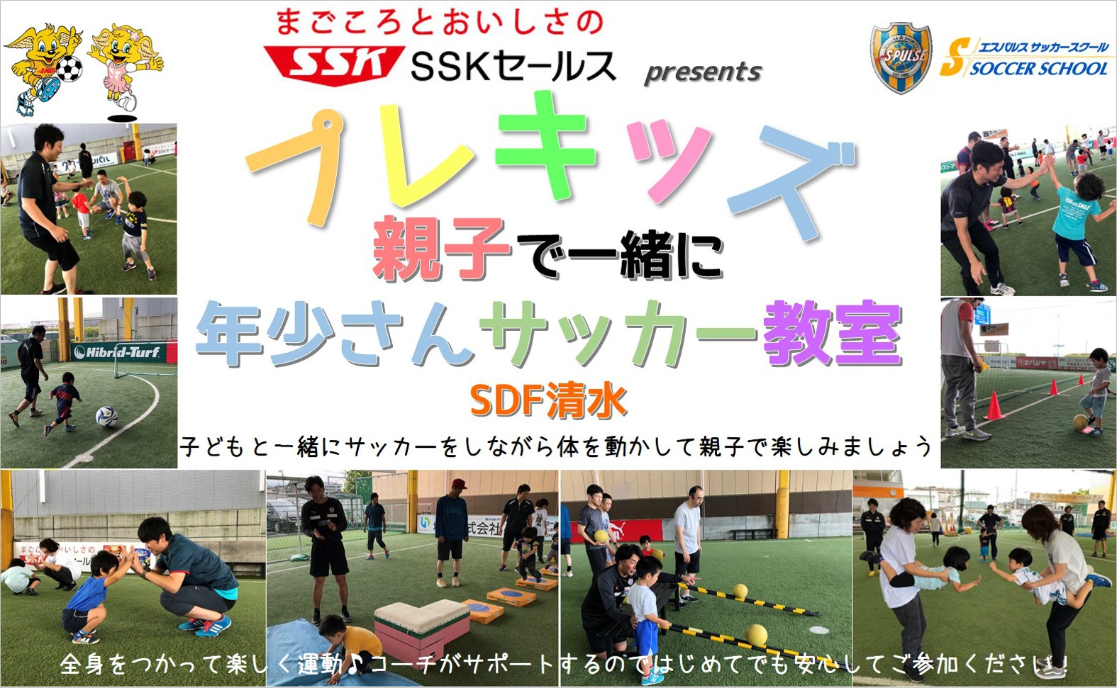 清水エスパルスは、地域事業応援パートナー SSKセールス様ご協力のもと、9月29日(日)にエスパルスドリームフィールド清水にて、年少児の子ども1名と保護者1名の親子を対象とした『SSKセールス presents プレキッズ 親子で一緒に年少さんサッカー教室』を開催いたします。
