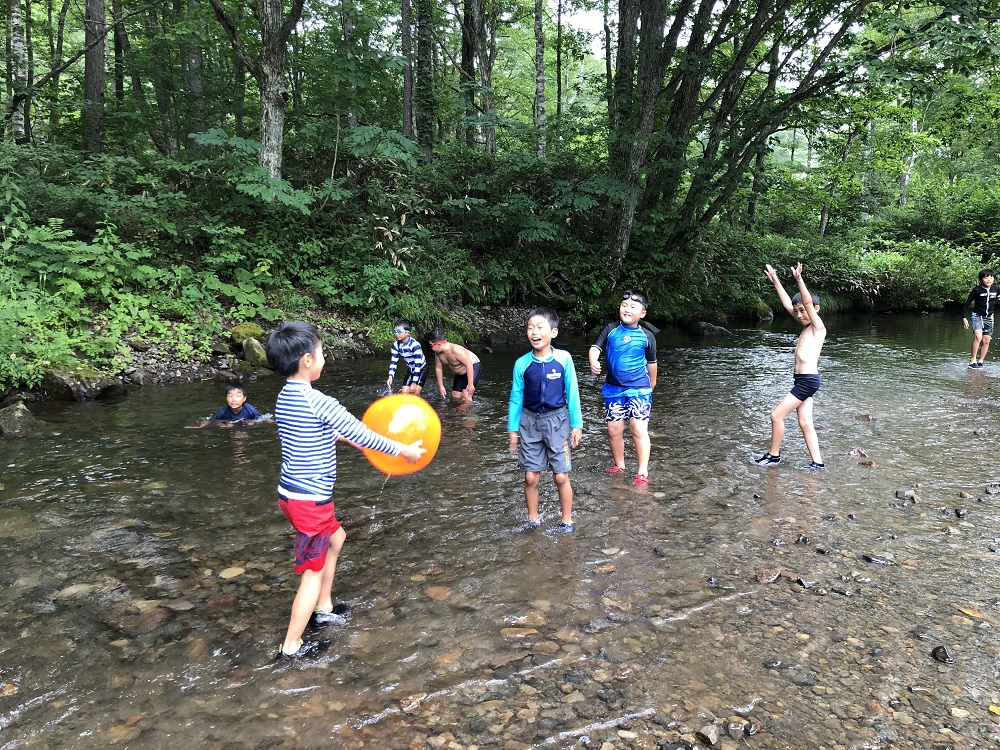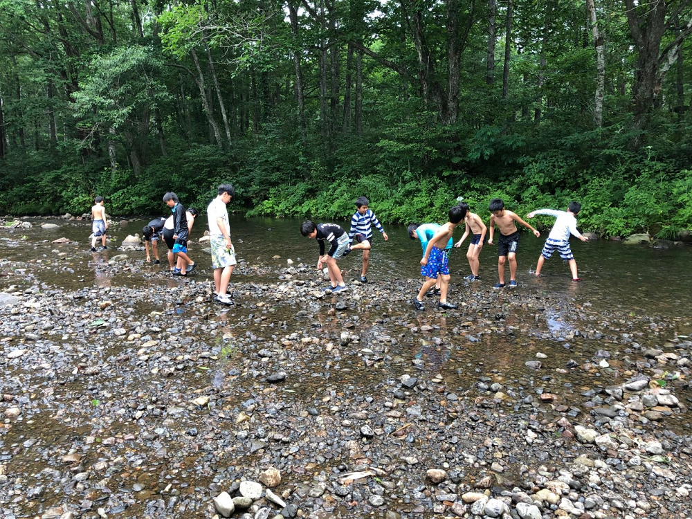 戸隠キャンプ場で行った川遊びでは、初めて会う仲間と徐々に打ち解け、水切りや水浴びでみんな楽しそうに遊んでいました!
