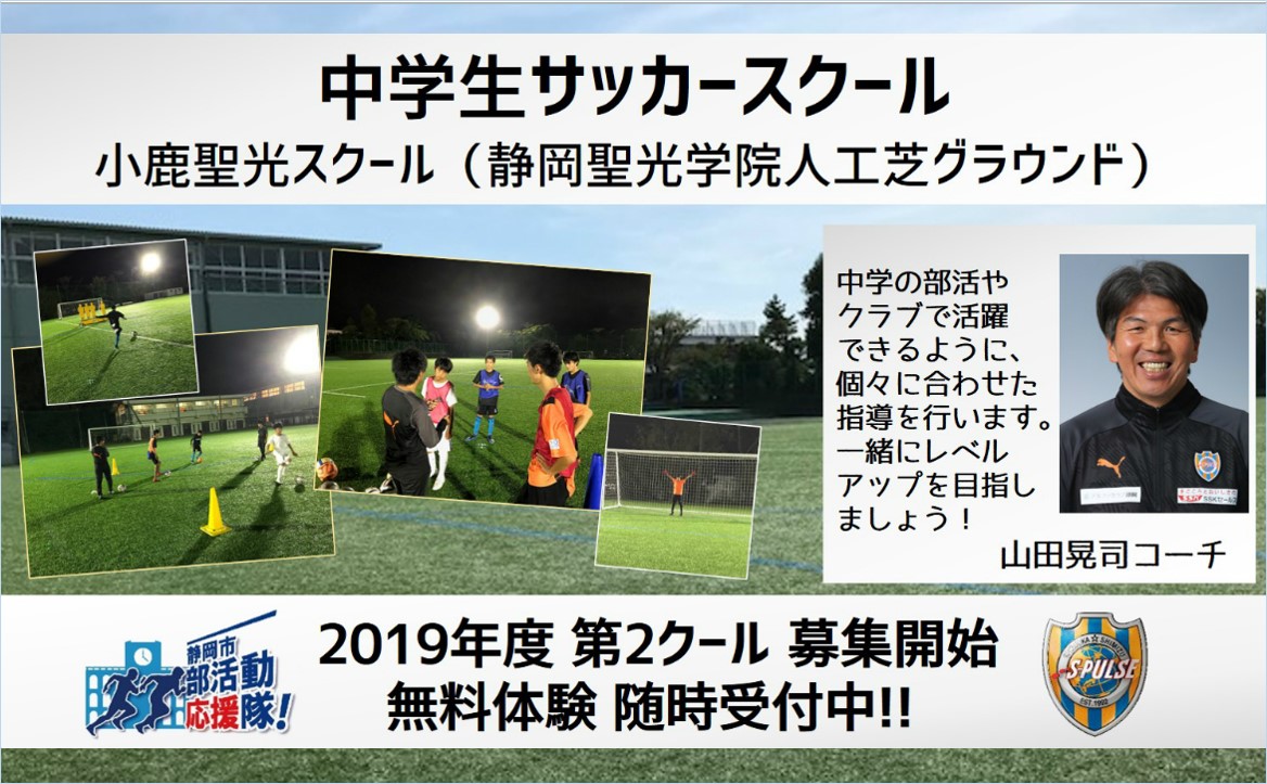 清水エスパルスは、静岡市教育委員会が取り組んでいる「静岡市部活動応援隊宣言」に賛同し、応援企業として新たに中学生を対象としたサッカースクールを2018年10月からスタートいたしました。