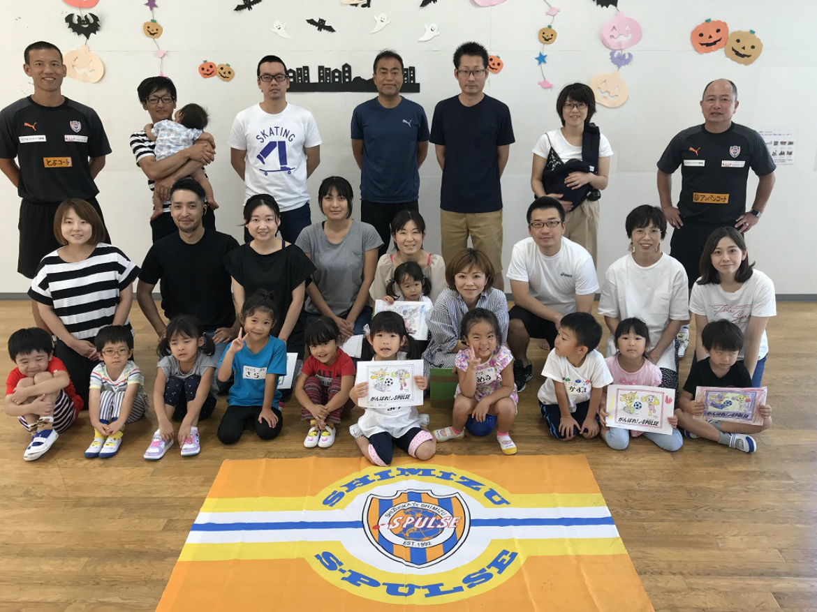 静岡市、静岡市中島児童館、エスパルスが共同で行う、『エスパルスハロープロジェクト事業 親子ふれあい運動教室』を9月22日(日)に開催し、今泉幸広教育事業部部長、山田晃司スクールマスター、萩原豊之コーチ、小川奈津美コーチの4名が参加しました。