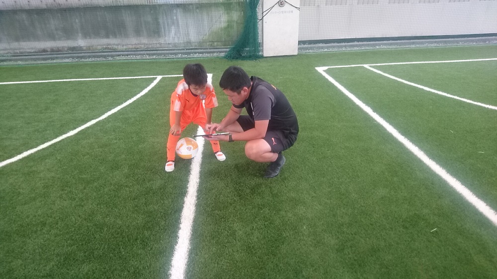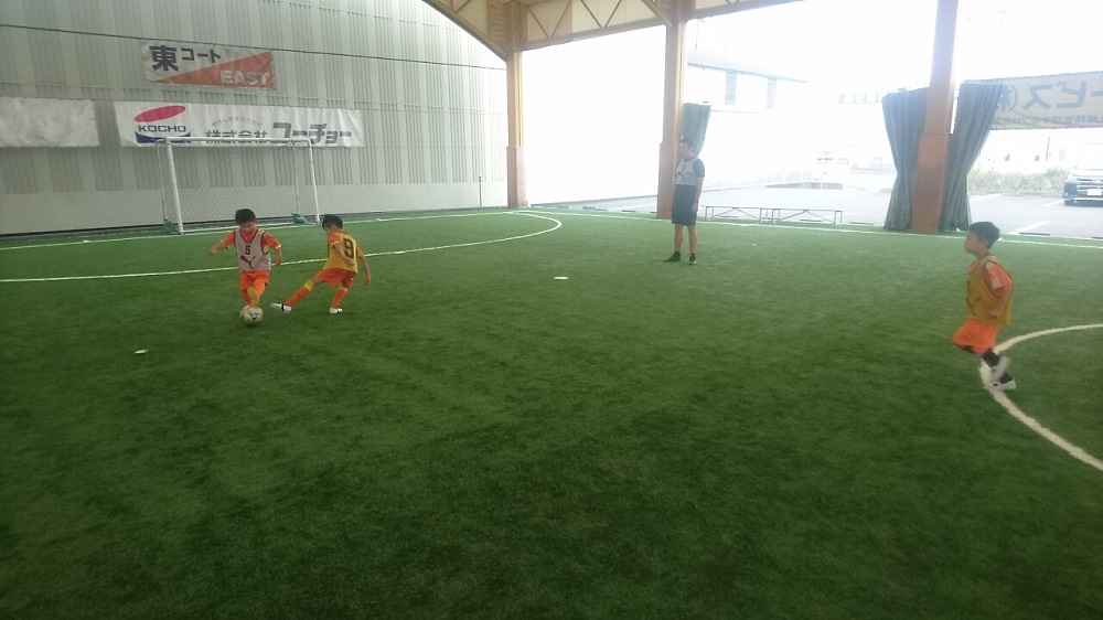 最後のゲームではドリブルで突破することはもちろん、周りを確認しながらボールを運び、パスやシュートまでスムーズに行うことが出来ていました。通常のスクールのゲームではなかなか得点を奪えていなかった子もドリブルシュートで得点をする場面があり、短い時間ながらも参加してくれた全員が積極的にチャレンジできるようになっていきました。