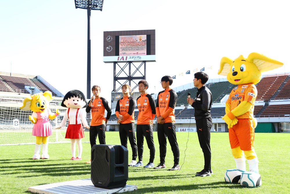 「ロータリーブース」では、ザ・サードプラネット様、株式会社豊富様、株式会社エスパルスドリームフェリー様/(一社)ふじさん駿河湾フェリー様、株式会社クア・アンド・ホテル/駿河健康ランド様、株式会社MYU様、自衛隊静岡地方協力本部様、清水警察署様、日本平消防署様、エスパルスドリームレーシング様、株式会社駿府楽市/駿府匠宿様にご協力をいただき、それぞれの場所でブースを設置してイベントを盛り上げていただきました。さらにドリームプラザ様より人気キャラクターのちびまる子ちゃんが来場、エフエムしみず/マリンパル様にはエスパルス応援番組「Go Go S-PULSE」にて当日の様子を参加者の方へインタビューしていただきました。