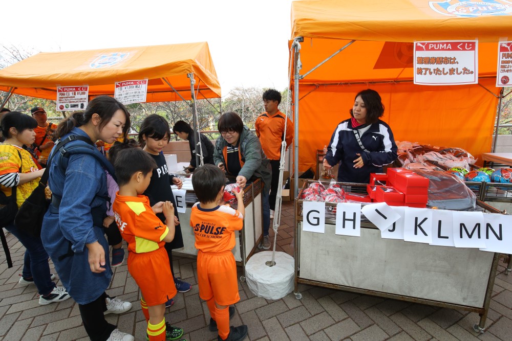 さらに、パルちゃんふわふわ、スタジアム見学やエスパルス選手バスの公開、ロッカールームにて歴代ユニフォームや選手・コーチ紹介、またコーチの「平成の思い出・令和の目標」を展示し、エスパルスをより身近に感じてもらいました。参加者の皆様と一緒に作成した「巨大パルちゃんのフラワーアート」がロッカールームを彩っていました。今回初めて行ったスタジアムクイズラリーでは、親子や友達と協力しながらスタジアムを回り、さまざまな問題にチャレンジしていました。物販コーナーではエスパルスがちゃがちゃ、特別価格のエスパルスアイテム、PUMAくじなどを販売し、飲食コーナーにはストリートスタイル様、ハニーハウス様、ねこや様、エスパルスポップコーンといったスタジアムグルメでも人気のお店にご出店いただきました。