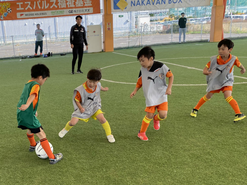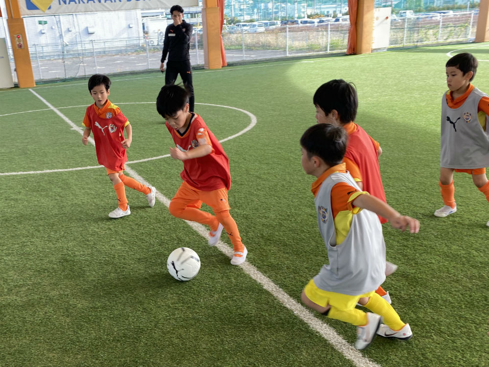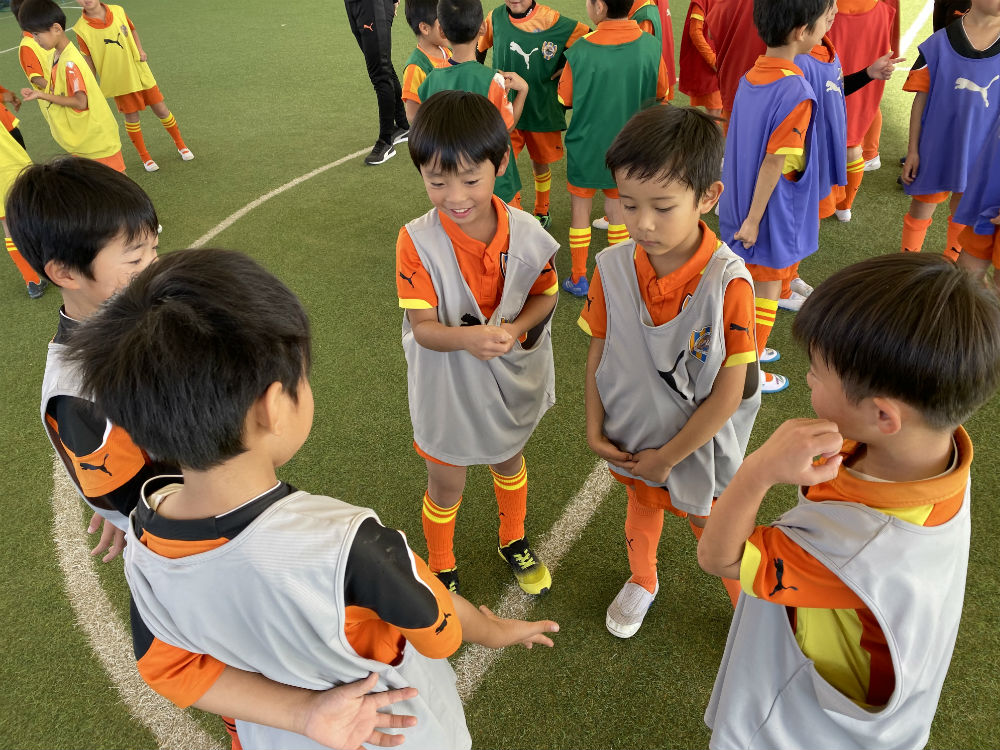 今回は様々な曜日に通うスクール生を混ぜ、チームを作ったので、試合前にチームごとで集まり自己紹介タイムを作り、チームの仲間の名前を覚えました。中にはキャプテンを決めるチームもあり、リーダーシップをとってチームを引っ張っている選手もいました。試合中にも、仲間の名前を呼んでボールを受ける場面や、仲間の名前を呼んで一緒にゴールを喜ぶ場面、そして大会後には、「新しい友達もできた」という声も聞けたのでとても嬉しく思いました。