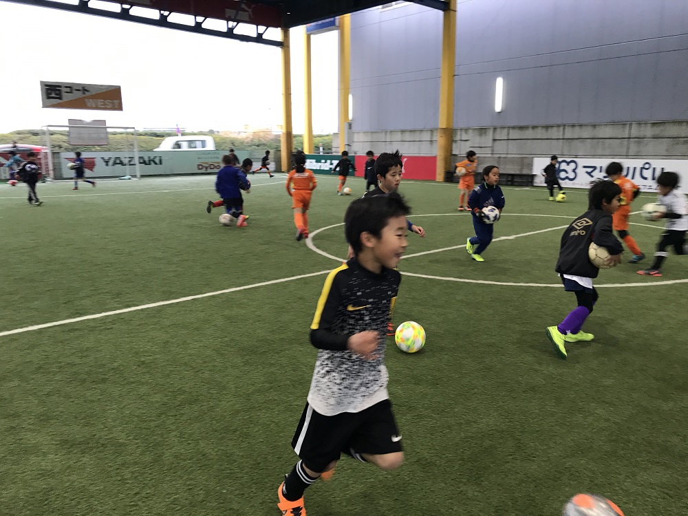 技術トレーニング終了後は3vs3(4ゴール)に入り、コーチたちも一緒にプレーしながら、『相手を観ながら逆をとること』と、『ボールを積極的に奪うこと』を伝えました。ボールを奪い行くことで攻めの上達にも繋がるので、今後も意識しながら取り組んで欲しいです。