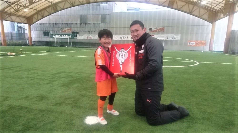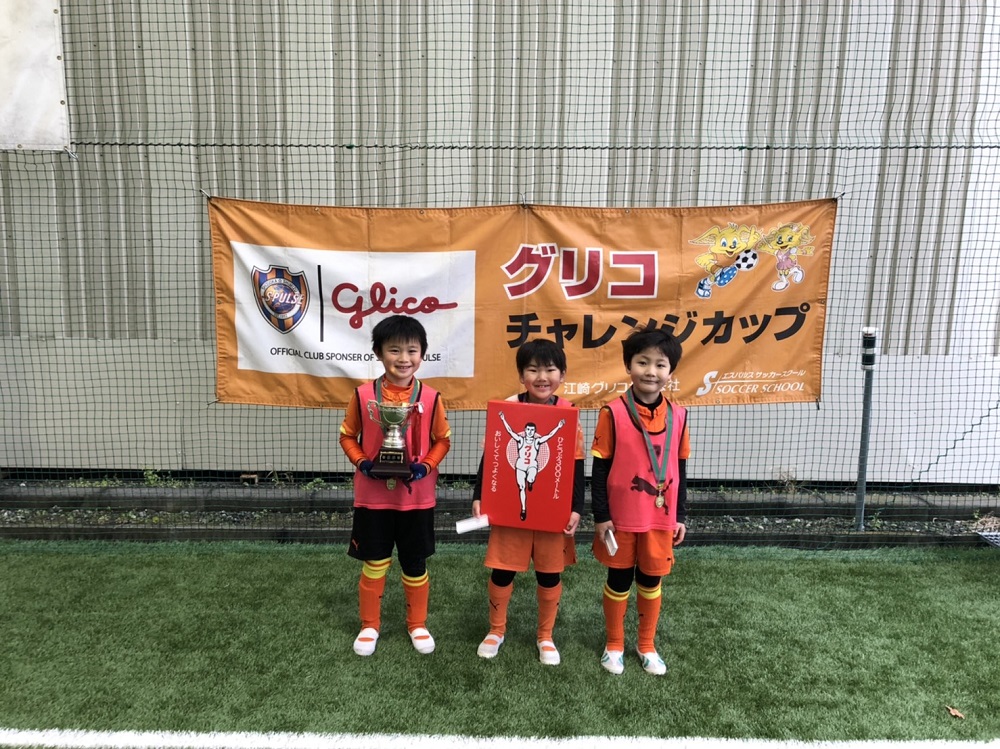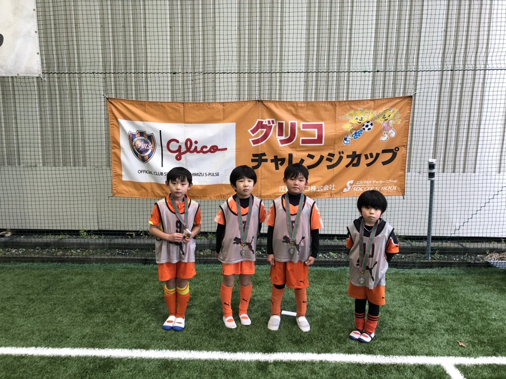 閉会式で今大会のMVP賞を発表し、MVPには大会のパートナーであるグリコ様より豪華景品が、また参加してくれたスクール生全員にもグリコ様よりお菓子が参加賞として贈られました。寒い中声援を送り見守っていただいた保護者の皆様、ありがとうございました。今後ともエスパルスサッカースクールをよろしくお願いいたします。