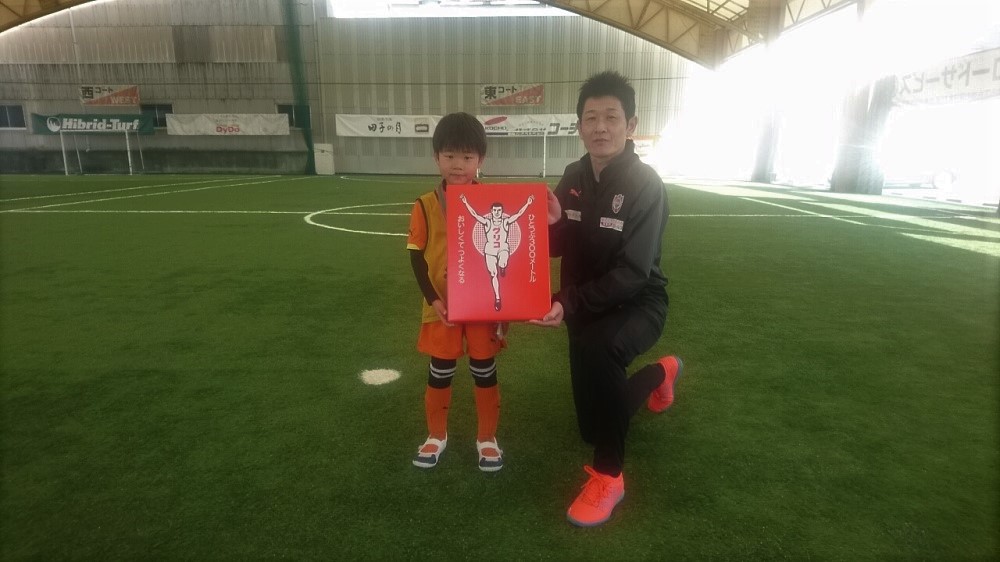 閉会式で今大会のMVP賞を発表し、大会のパートナーであるグリコ様より豪華景品が、また参加してくれたスクール生全員にもお菓子が参加賞として贈呈されました。熱い声援を送り見守っていただいた保護者の皆様、ありがとうございました。今後ともエスパルスサッカースクールをよろしくお願いいたします。
