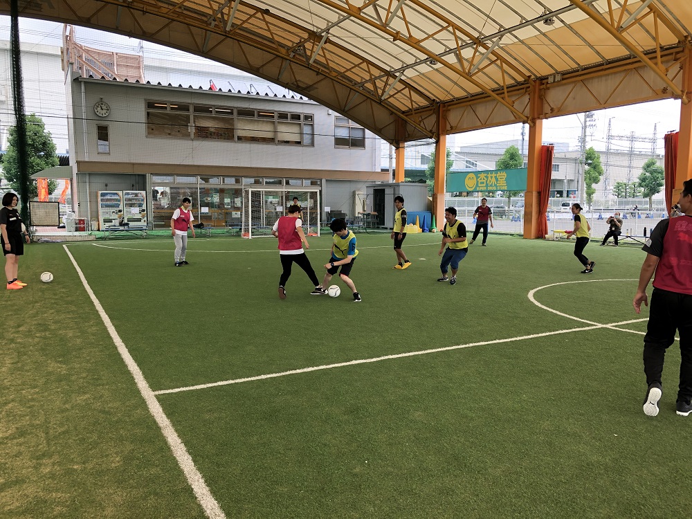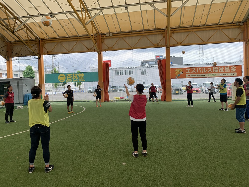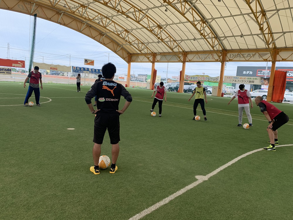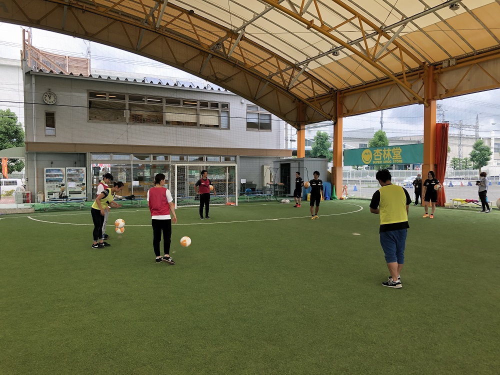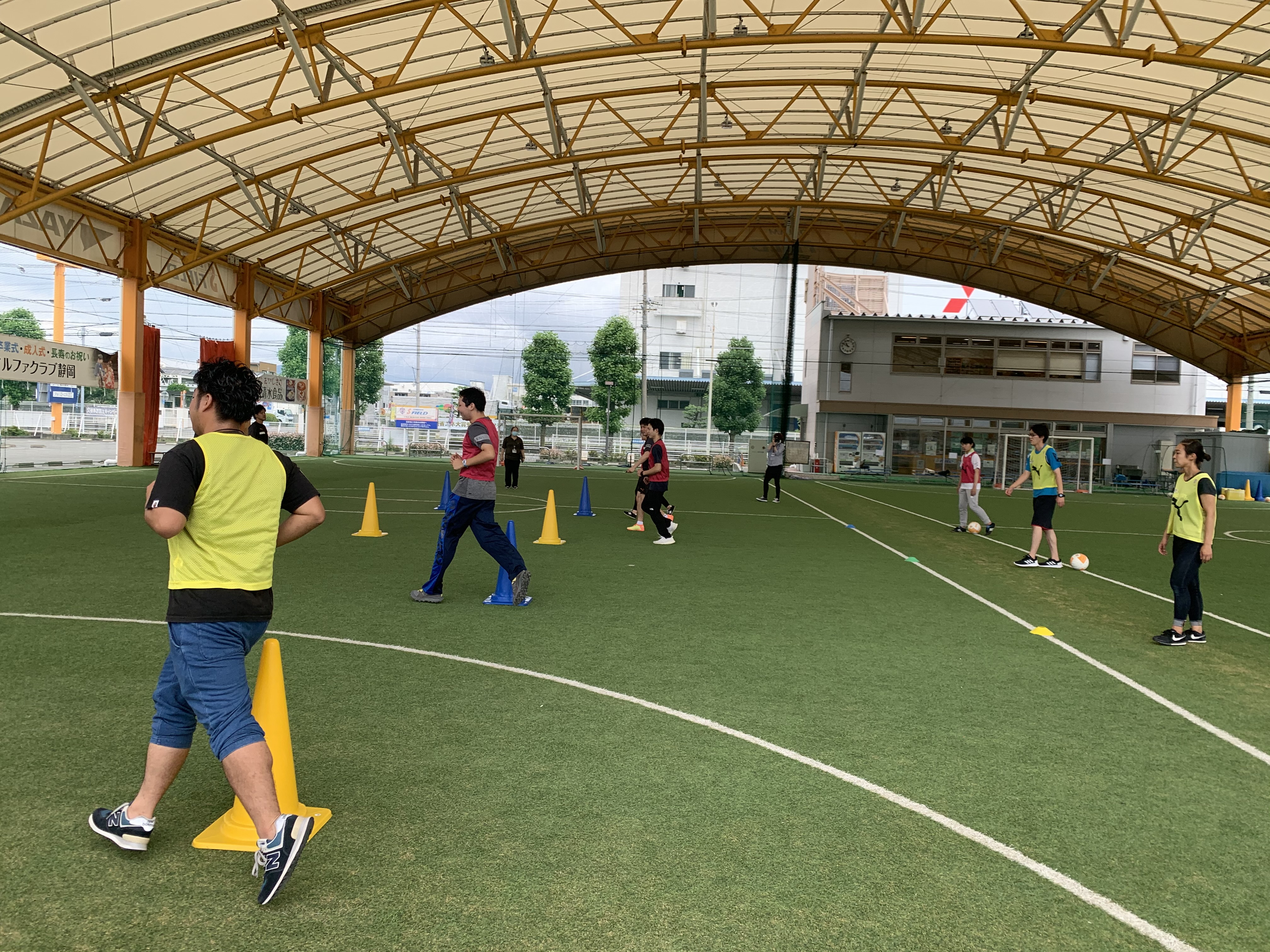 実技の内容は、「鬼ごっこ系」、「動きづくり系」、「ボールフィーリング系」、「ゲーム」と普段サッカースクールで幼児クラス(キッズクラス)の子どもたちを対象としたメニューを行い、参加して頂いた先生方に実際に体験してもらいました。そのメニューのねらいや注意点なども補足説明させていただいたことで、先生方の理解も深まったように感じました。そして何よりも先生方の笑顔、笑い声など生き生きとした表情や楽しそうな様子が溢れていたことが印象的でした。