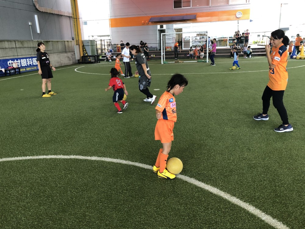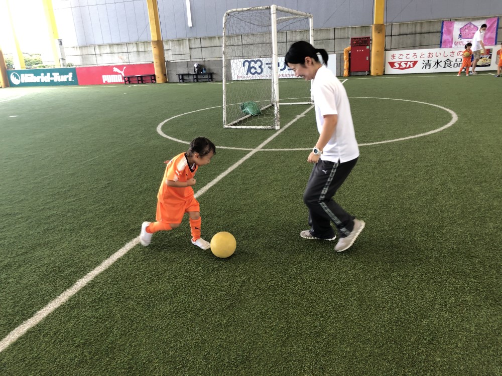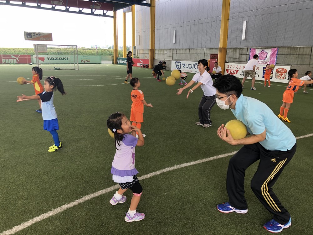 9月13日(日)エスパルスドリームフィールド清水にて、『JFAなでしこひろば清水 by清水エスパルス』を開催しました。現代「女の子だけ」でサッカーをするという機会が減少しています。また、「女の子がサッカーを始めるきっかけとは何か」を考えたときに、「保護者の方や兄弟の影響が大きいのではないか。」と思い、今回初めて、親子でのなでしこひろばを行い、キッズの部に18組、小学生1~4年生の部に18組と、たくさんの親子に参加していただきました。