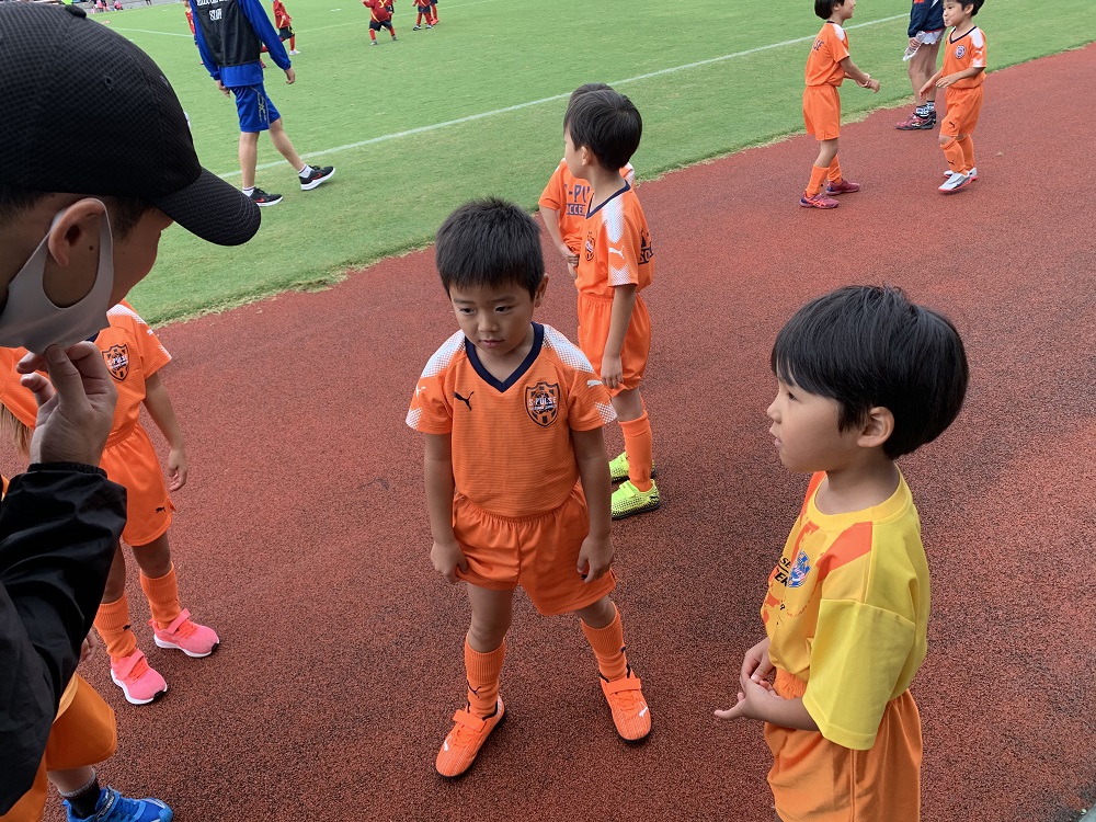 普段違う曜日に通うスクール生がチームを組むこと、また初めて試合をするスクール生もいたことで試合前は緊張した顔も見られましたが、試合が始まるとボールを追いかけ、ピッチを駆け回る姿が見られ、みんなが一生懸命頑張っていて点を取られてもすぐに取り返そうとする姿がとても印象的でした。