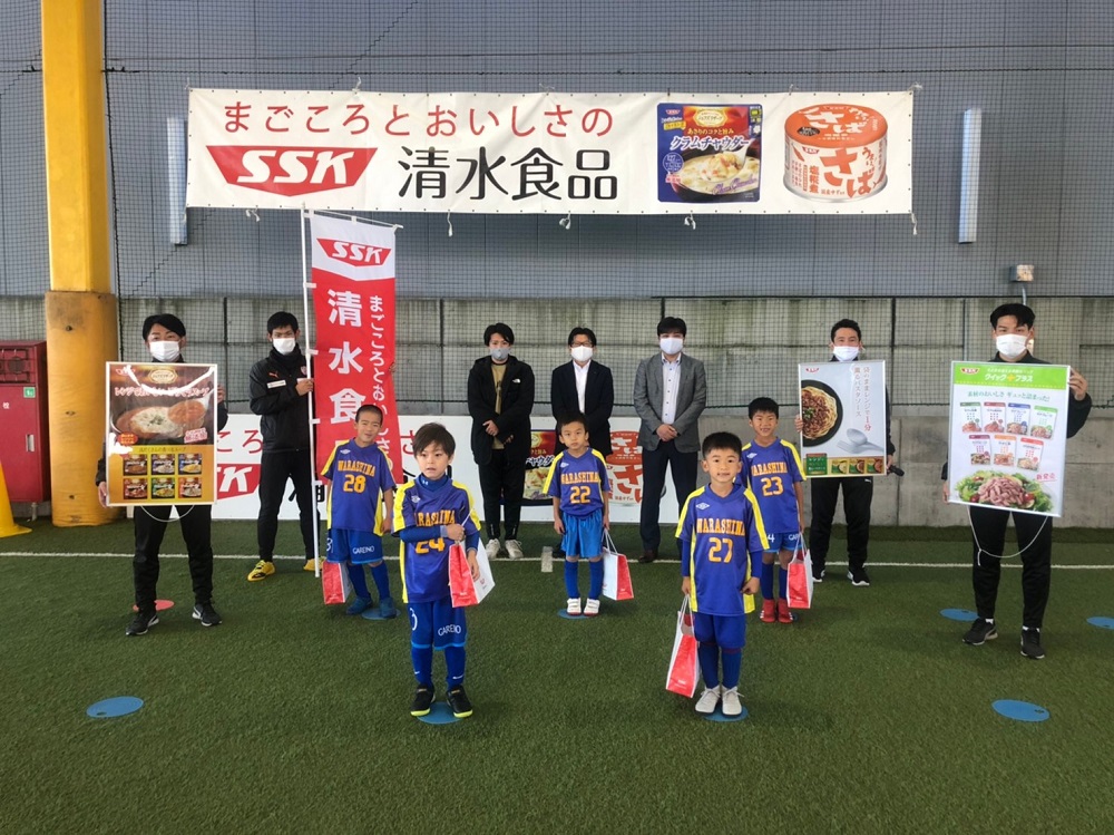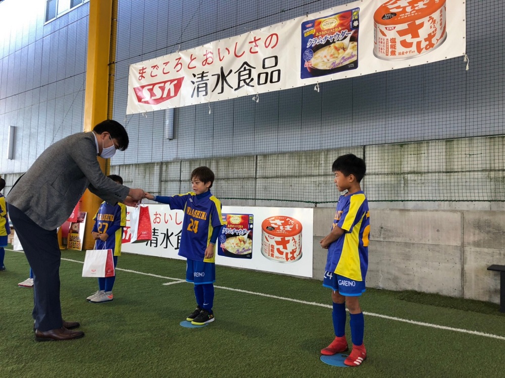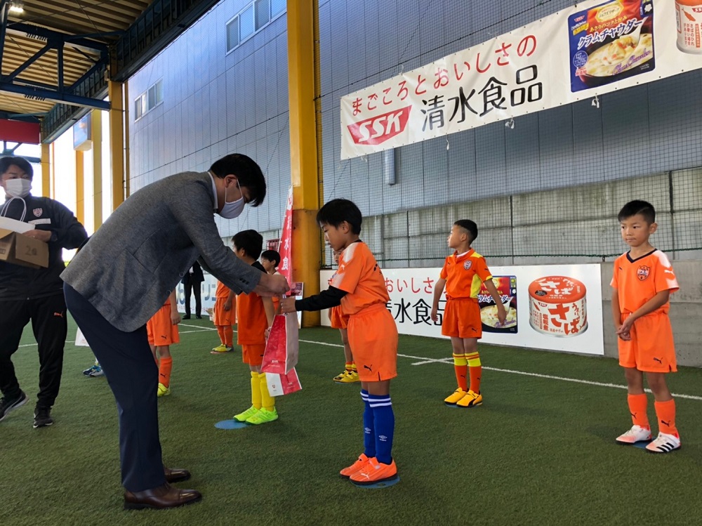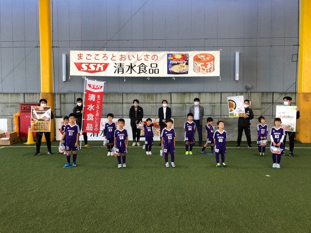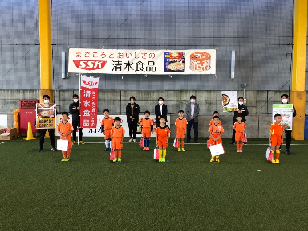 なんと!参加した全チームに、清水食品様で取り扱っている大好評の食品の詰め合わせセットを贈呈。優勝チームにはSSK商品8点セット、準優勝チームにはSSK商品6点セット、3位~5位チームにはSSK商品3点セットを提供していただきました!賞品をもらって子ども達の顔はニコニコ!今日は本当にがんばりましたね!!!