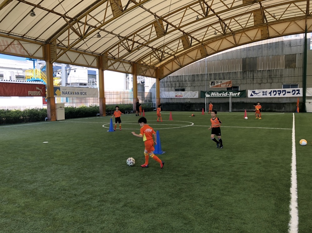 トレーニング内容は、普段のスクールでやっている一般的なコントロールスキルから、今回初めて行う軸足通しコントロールスキルまで、多種多様なコントロールに取り組みました。初めは、出来ないこともありましたが、繰り返しプレーすることや、デモを見て、真似ることで徐々に出来るようになった選手など様々ではありましたが、やはり子どもの吸収力の高さには驚かさせられました。最後の試合では、トレーニングで習得した技術が多く発揮されており、大変良かったと思います。