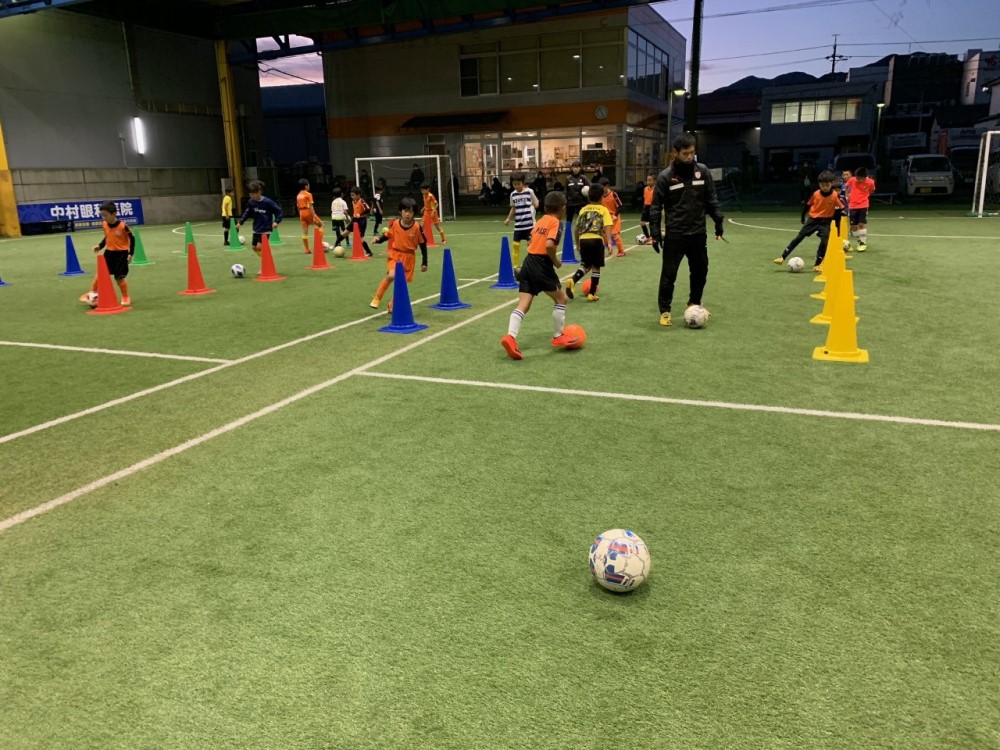 常に利き足の前にボールを置くことを意識し、軸足を基準にしてボールを扱う練習をしました。選手たちは、普段と違う感触で初めは戸惑う姿もありましたが、繰り返し練習することで少しずつ感覚をつかみ始めたようでした。