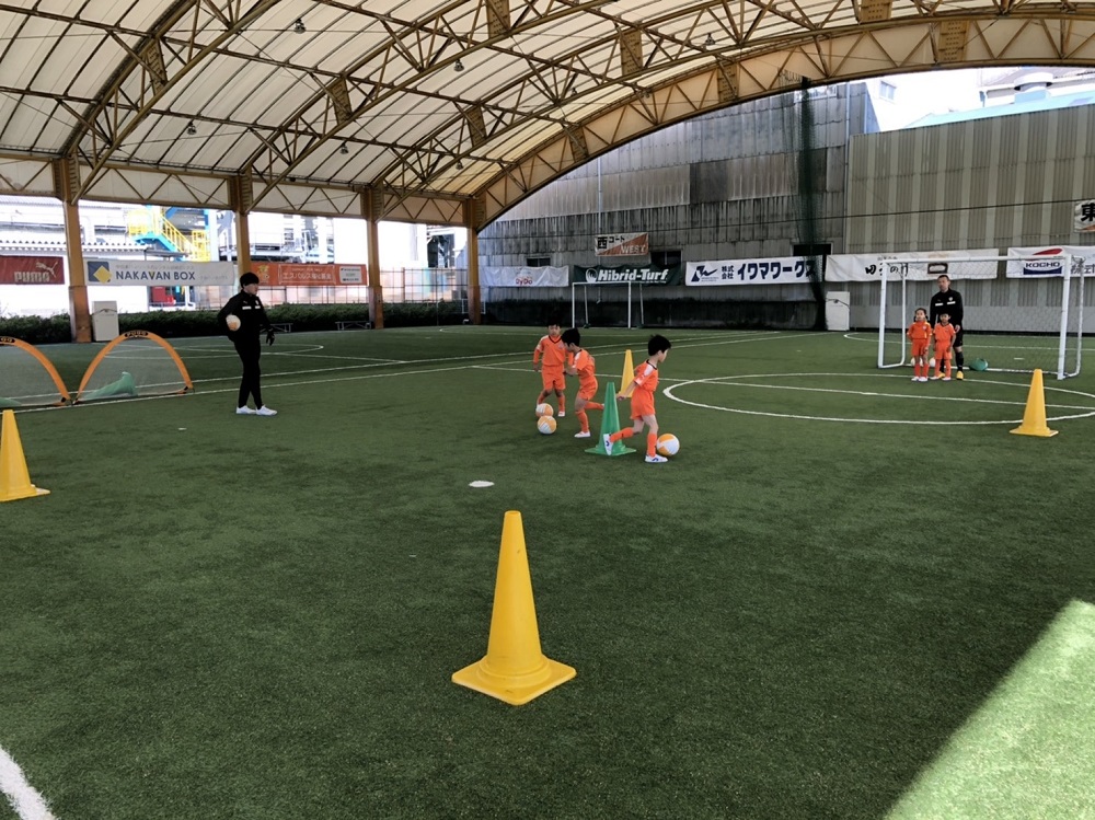チャイルドクラス(1年~2年生)はゴールに向かうドリブルとターンのトレーニングを行いました。