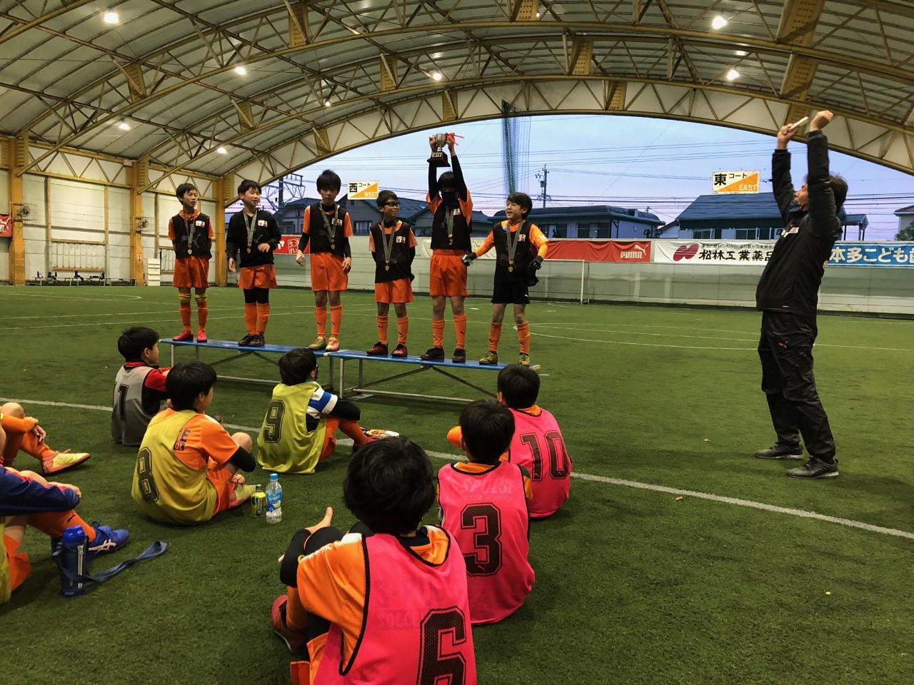 4チームリーグで予選を行いその順位で決勝トーナメントの対戦を決めメダルを争いましたが、最上級生の試合ともなるとアイデアや連携がないと簡単にゴールを奪えず、それぞれのチームがコミュニケーションを取りながら頑張っていたと思います。
