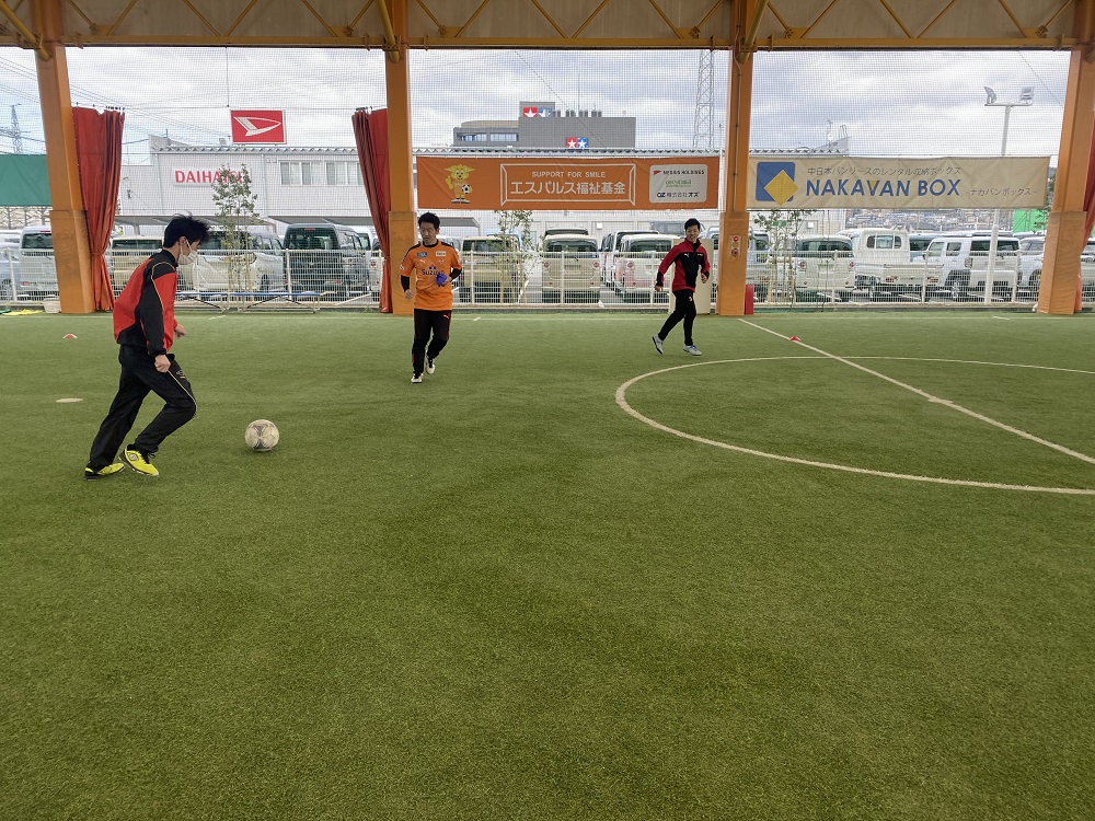 些細なことや少しの気遣いでプレーがしやすくなったりパスがたくさん繋がり前へすすめるようになったり参加者の方は味方の選手とコミュニケーションを取りながら動いている様子でした。