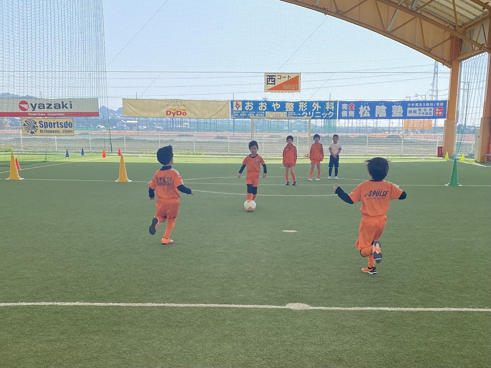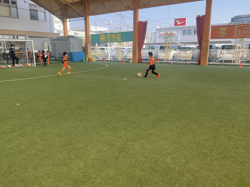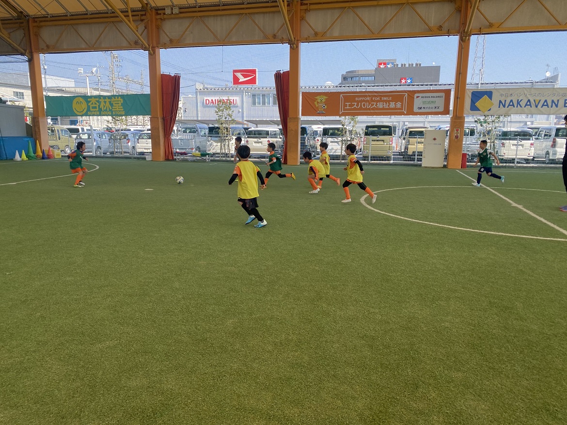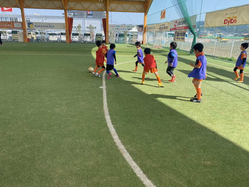 今回はボールの置く場所と姿勢をポイントにして行ない、選手たちは集中して練習をする姿がありました。始めは知らない子もいる中での練習に慣れていない様子でしたが、時間が経つと自分たちで話をしたり、進んで自ら行動する選手が目立つようになり、練習も活気が出てくるようになりました。最後のゲームでもボールを積極的に奪いに行く選手や仲間に声をかけてアドバイスする選手やゴールを決めて喜ぶ選手も多くいました。