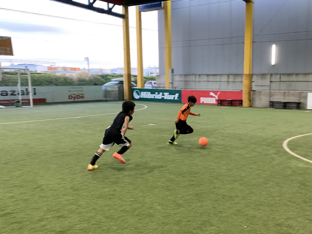 まずはドリブルの練習から開始。コーンを抜けていく単純な練習の中で、様々なポイントを意識して行いました。また今回は、「相手の状況を観てボールを動かすこと」をポイントの中に加え、1対1を中心にトレーニング。何度も繰り返し行う中で、自分の距離感をつかみ、少しずつ相手をかわせるようになった選手が多く見られました。