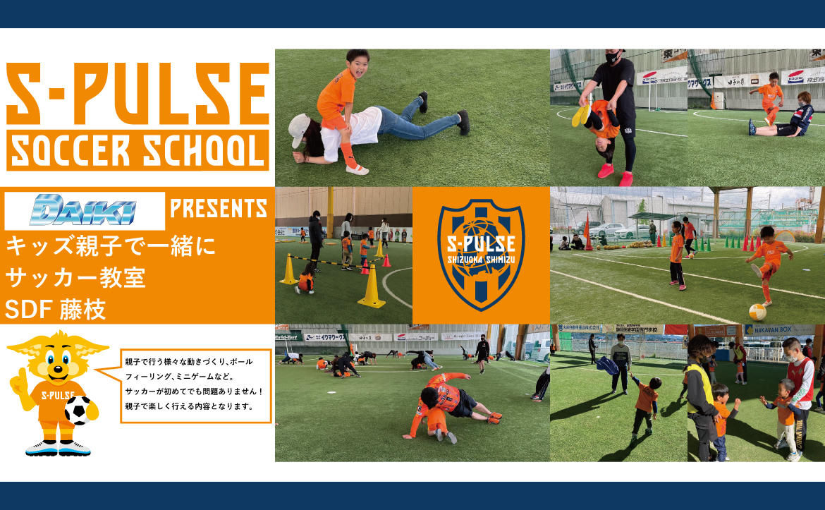 清水エスパルスは、地域事業応援パートナー 大輝様ご協力のもと、6月27日(日)にエスパルスドリームフィールド藤枝にて、年少児・年中児の子ども1名と保護者1名の親子を対象とした『大輝 presents キッズ親子で一緒にサッカー教室』を開催いたします。