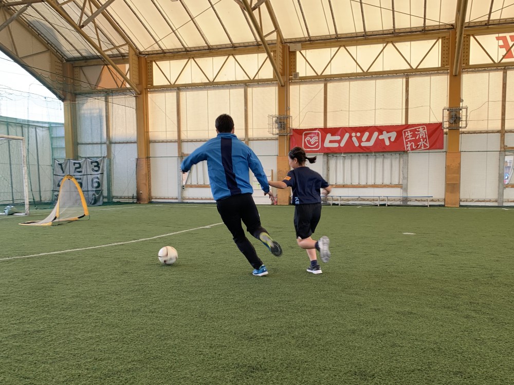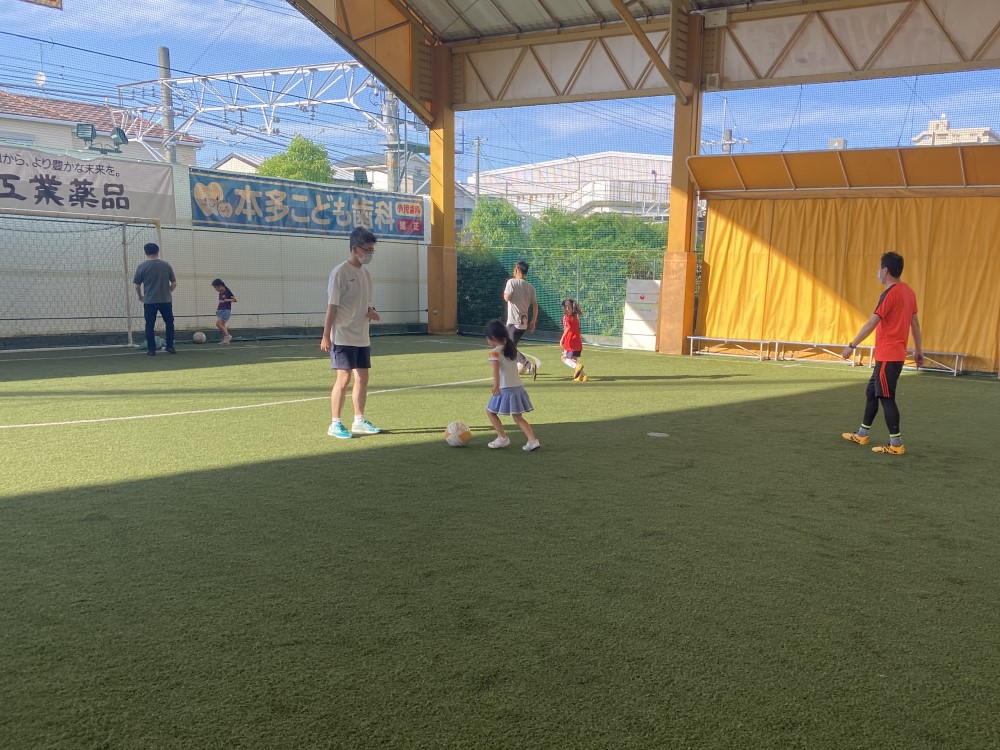 「お父さん強かったー!だけど、とっても楽しかった。」と子どもたちは笑顔で帰ってくれ、保護者の方からも、「女の子だけで、また親と一緒にできるので、とても楽しみにしていました。」や、「普段から一緒にボールを蹴っていますが、思いっきりやることができて楽しかったです。」というご感想をいただきました。