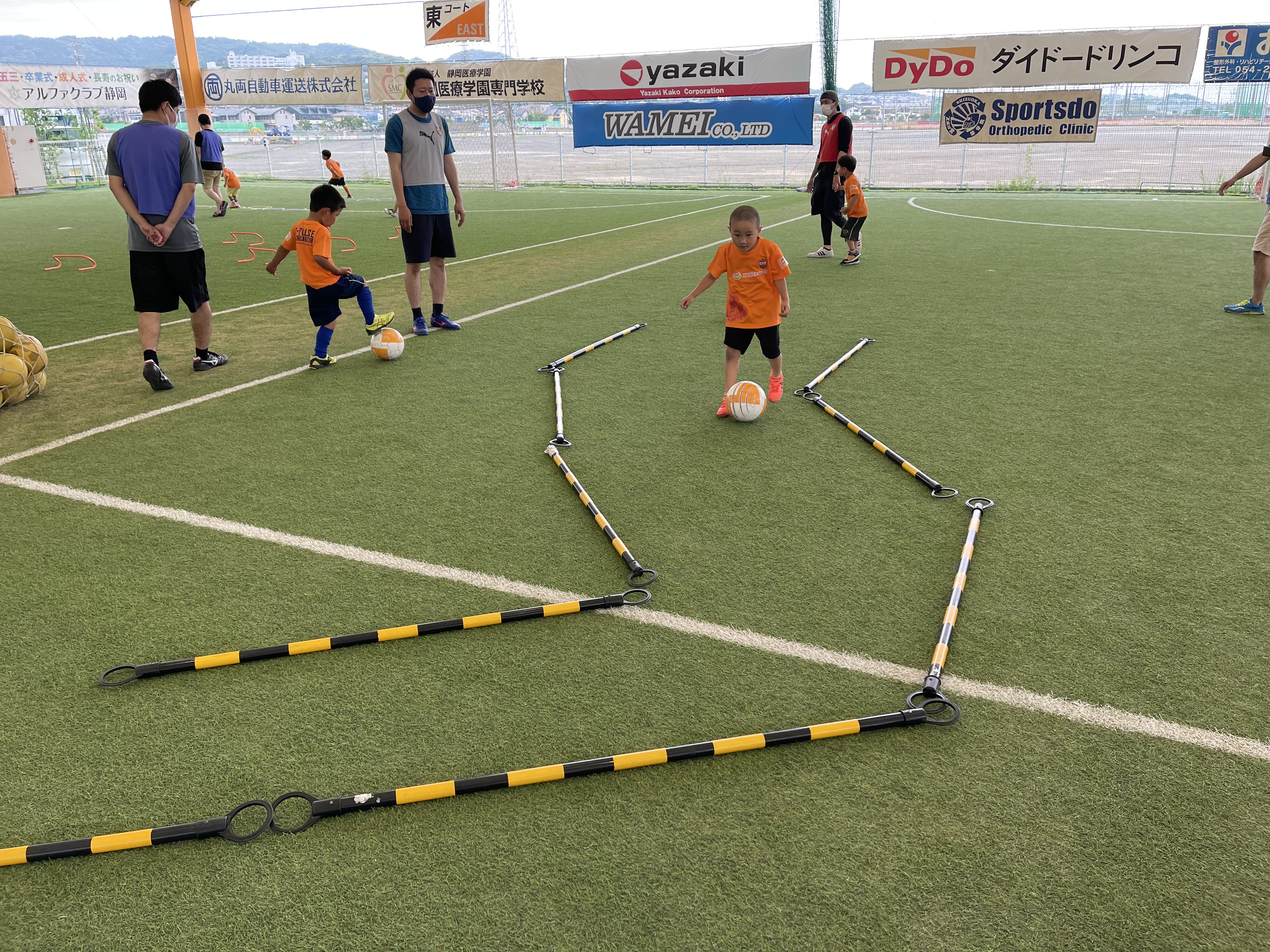 6月13日(日)エスパルスドリームフィールド静岡にて、年中さんを対象にした『エスエスケイフーズpresents親子で一緒に年中さんサッカー教室』を開催し、28組の親子の皆さんが参加しました。