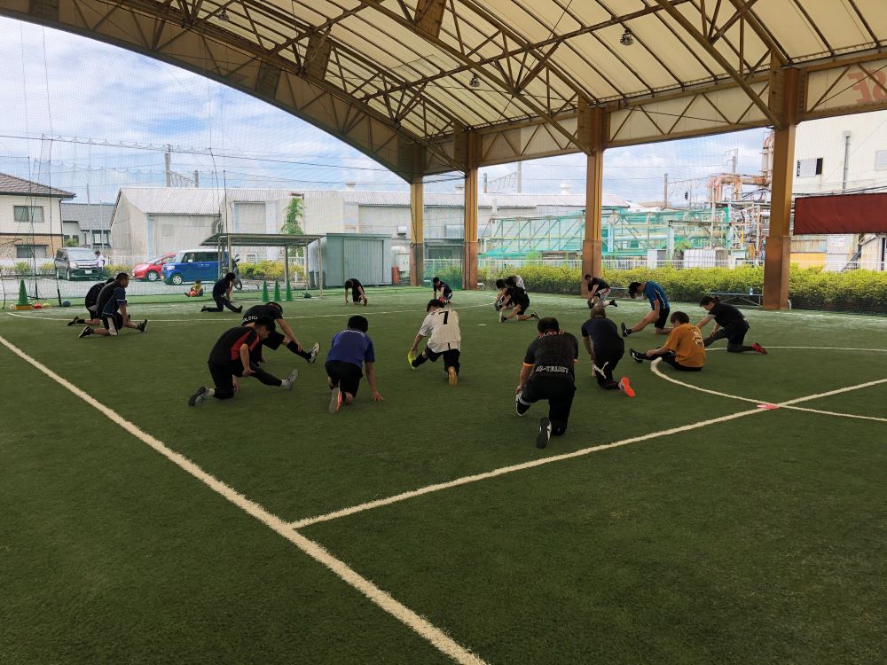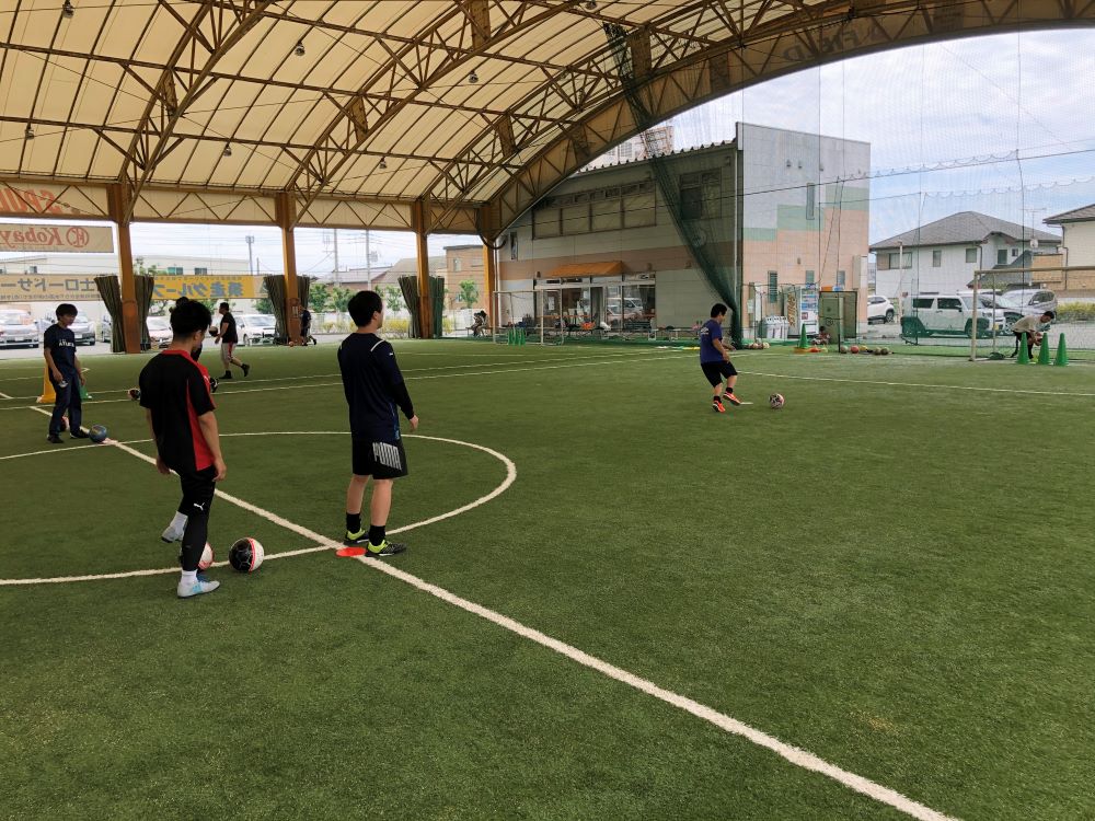 1つ目のトレーニングではパス&コントロールを行いました。コントロールでは、ボールの置き所を意識し、パスでは、コーンとコーンの間を正確に通していました。