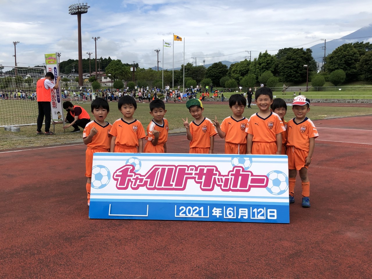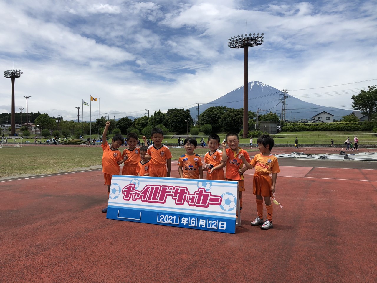 6月12日(土)に御殿場市陸場競技場にて、第30回スルガCUP静岡県チャイルドサッカー大会in御殿場が開催され、エスパルスサッカースクールから、年中・年長児を対象に駿東、伊豆、沼津、御殿場会場に通うスクール生と、菜の花こども園(契約園)の園児が参加しました。
