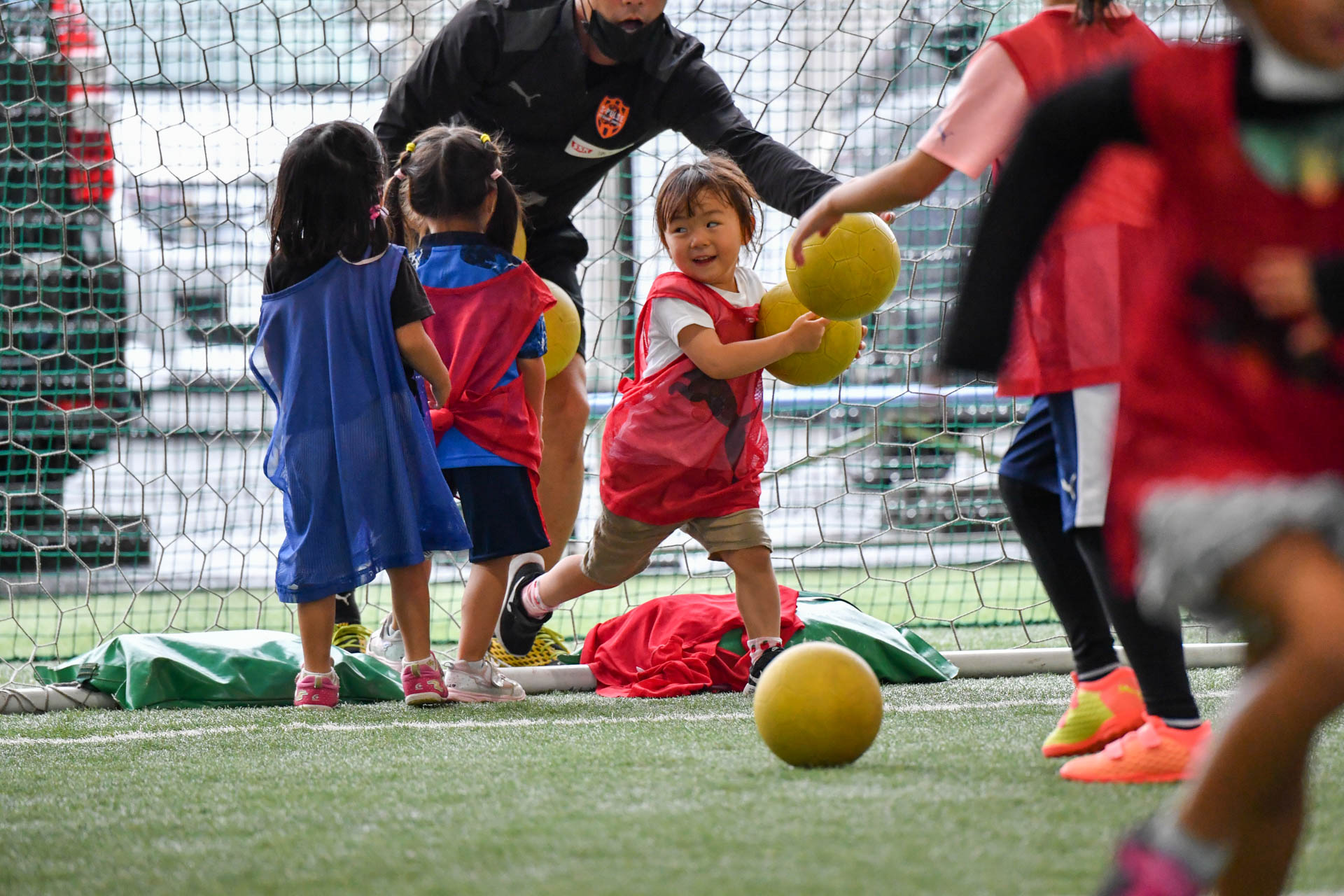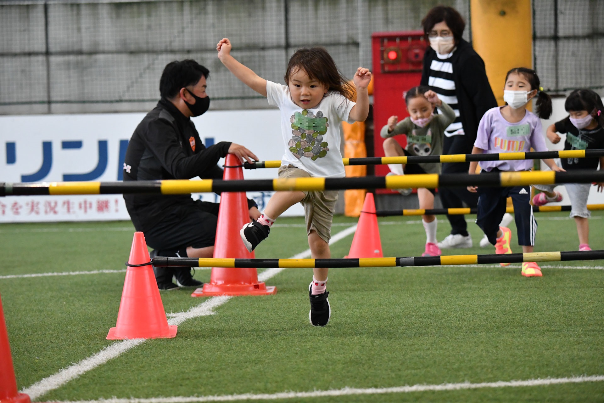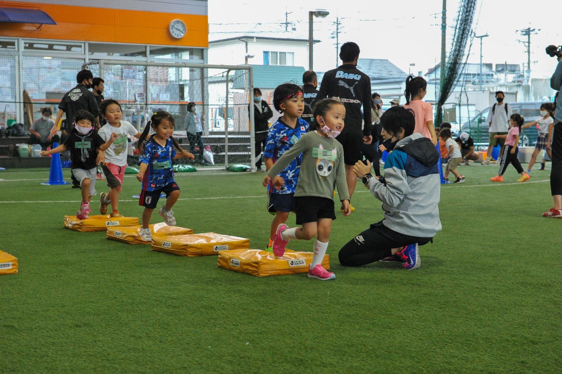 活動メニューは、サーキットトレーニングやボール運動、その後ボール使ったゲームから、最後は試合へと流れました。