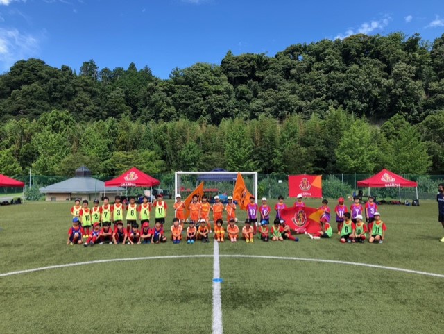 7月28日(水)に浜松フルーツパークにて『グランパス交流戦』を実施し、藤枝エリア(藤枝・榛原・相良・島田・吉田)2年のスクール生12名の選手たちが参加してくれました。