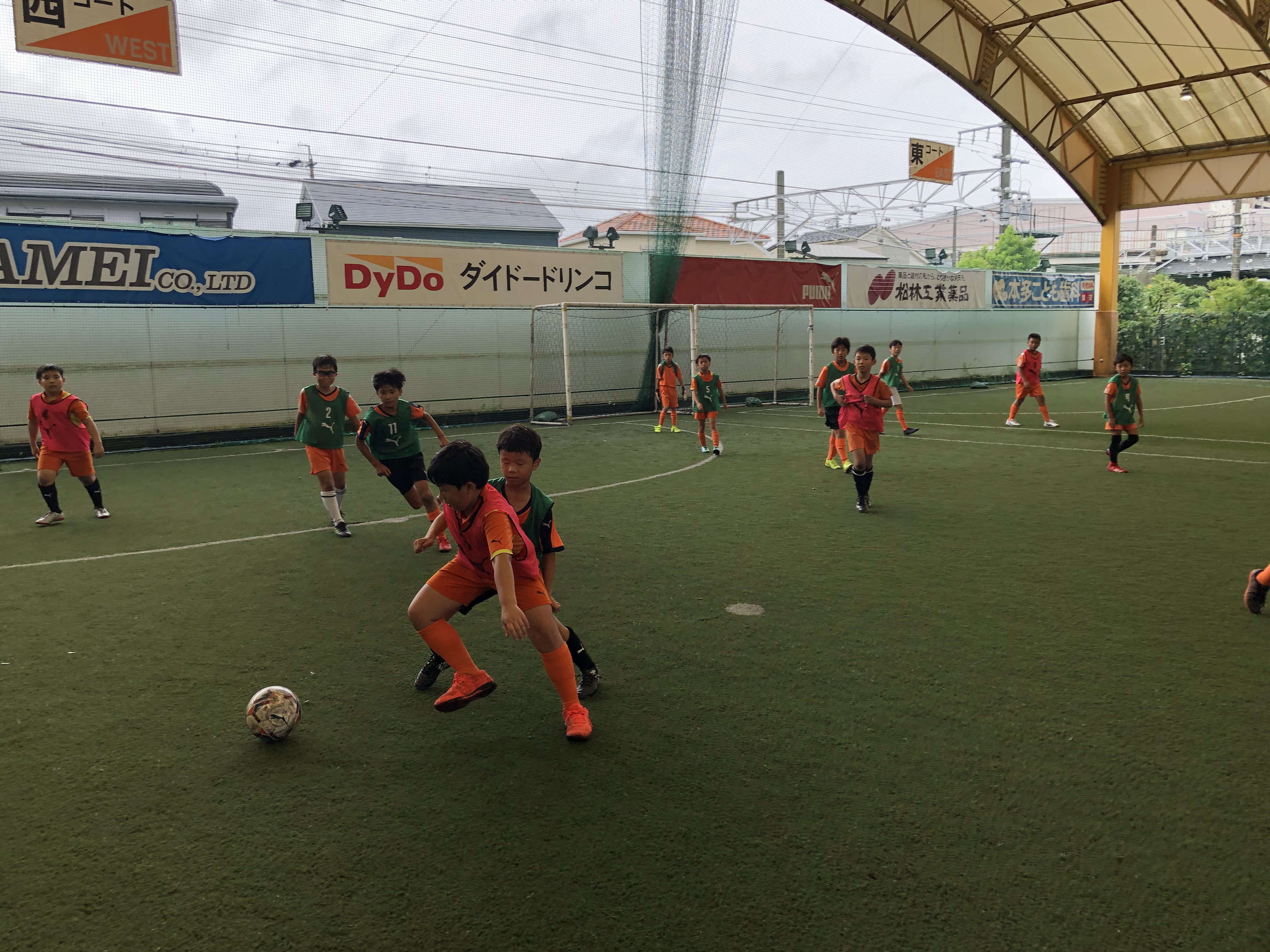 2試合目が終わって、「今の試合はどうだった?」と聞くと、やりやすくなったと答えた選手はゴールを決めた2名ほど。「さっきやってみようって話し合った、フリーになることをやってみた人?」と聞くと先ほど手を挙げたメンバーだけ。「自分たちで話し合って気づいたことは何でもトライしてやってみよう!」と声を掛けて次の試合に臨みます。