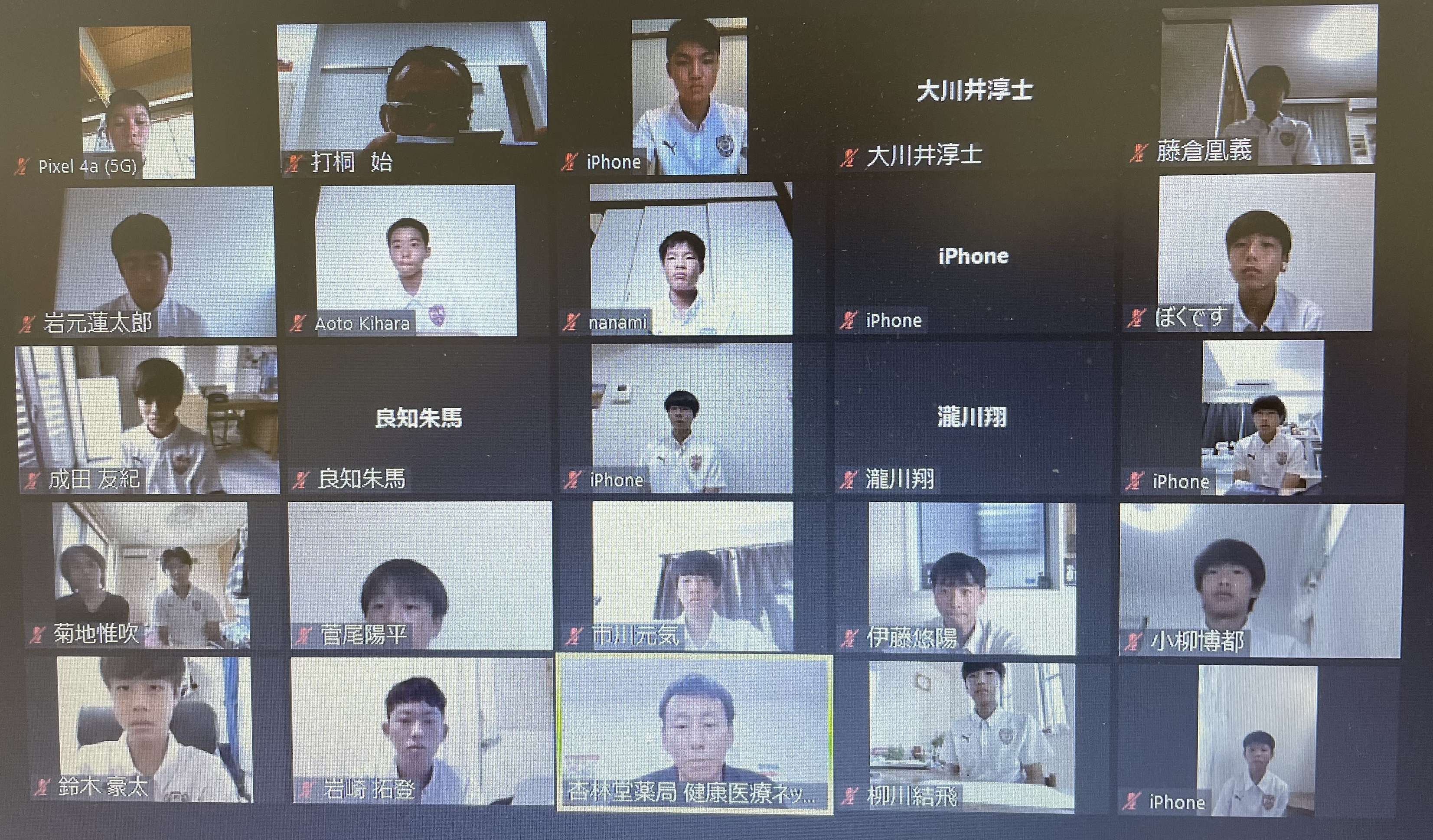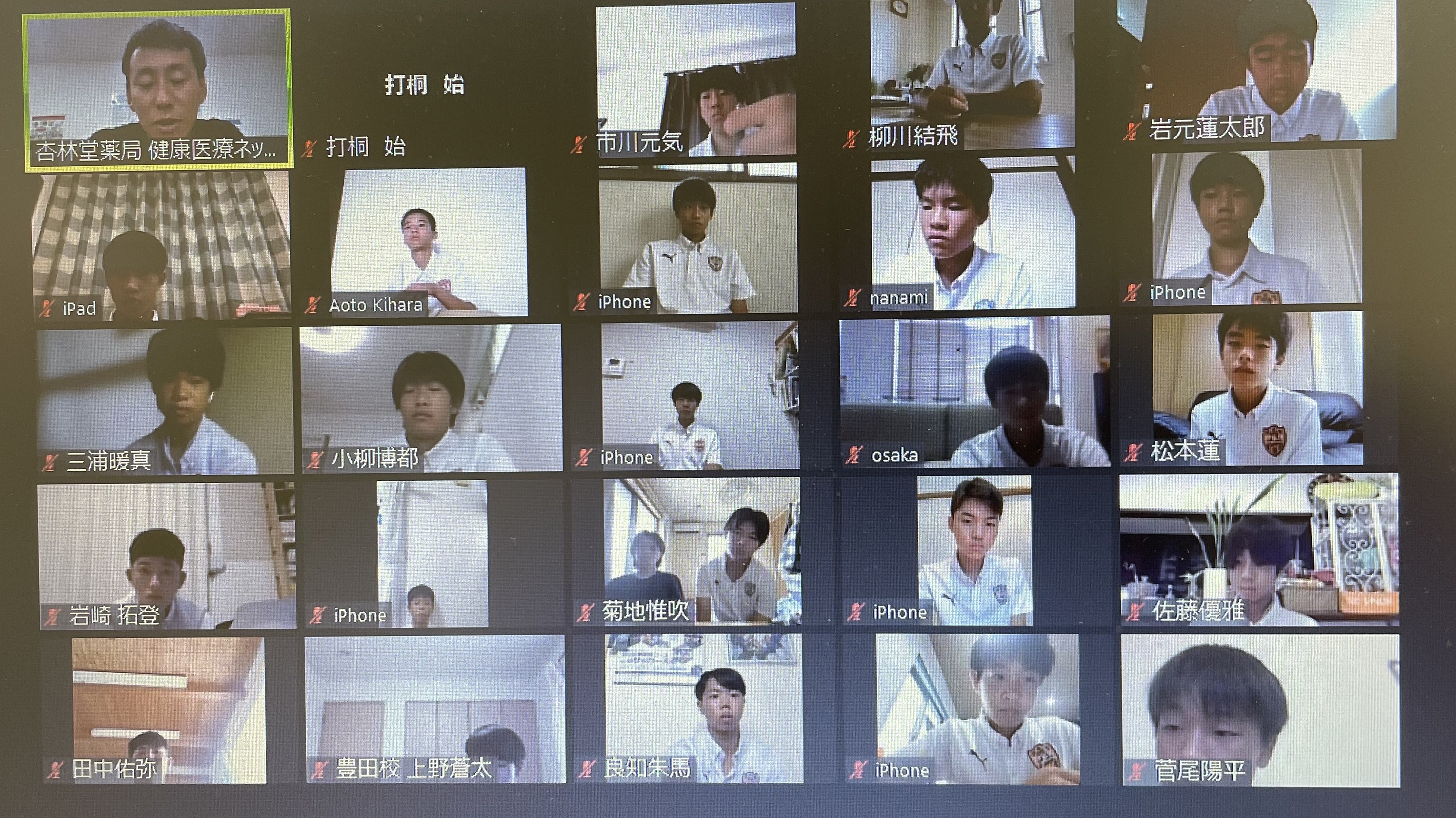 当日は、オンラインで杏林堂薬局様管理栄養士の酒井英彰様に講師をして頂き約43名の選手を対象に実施しました。