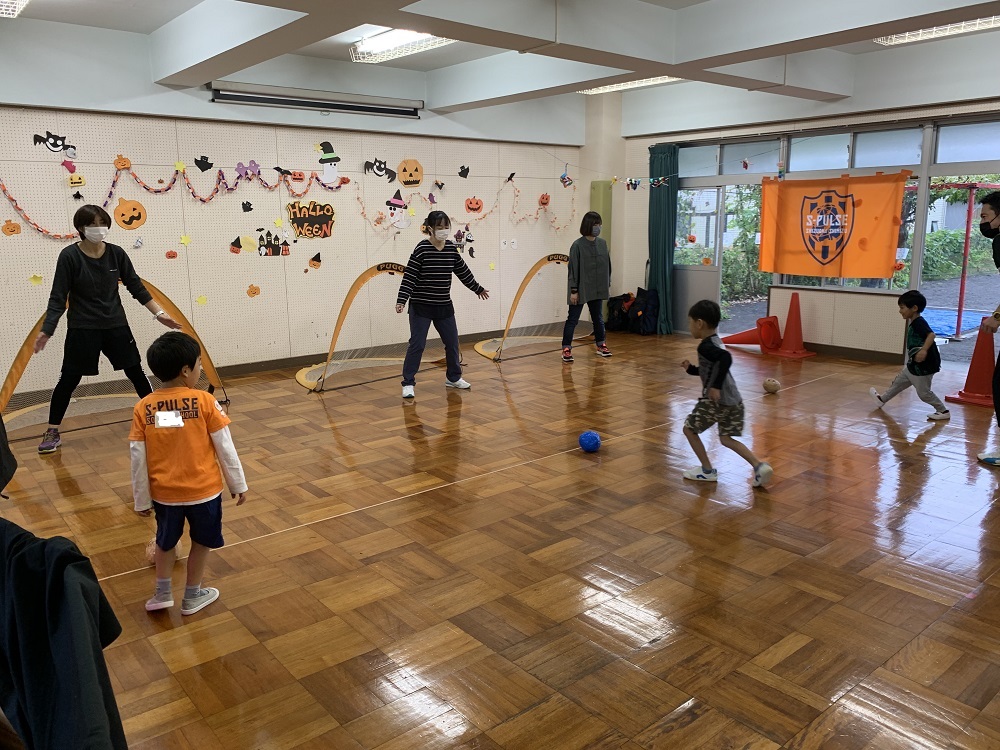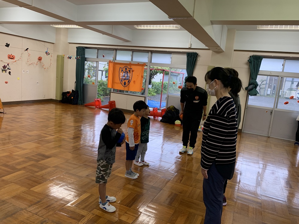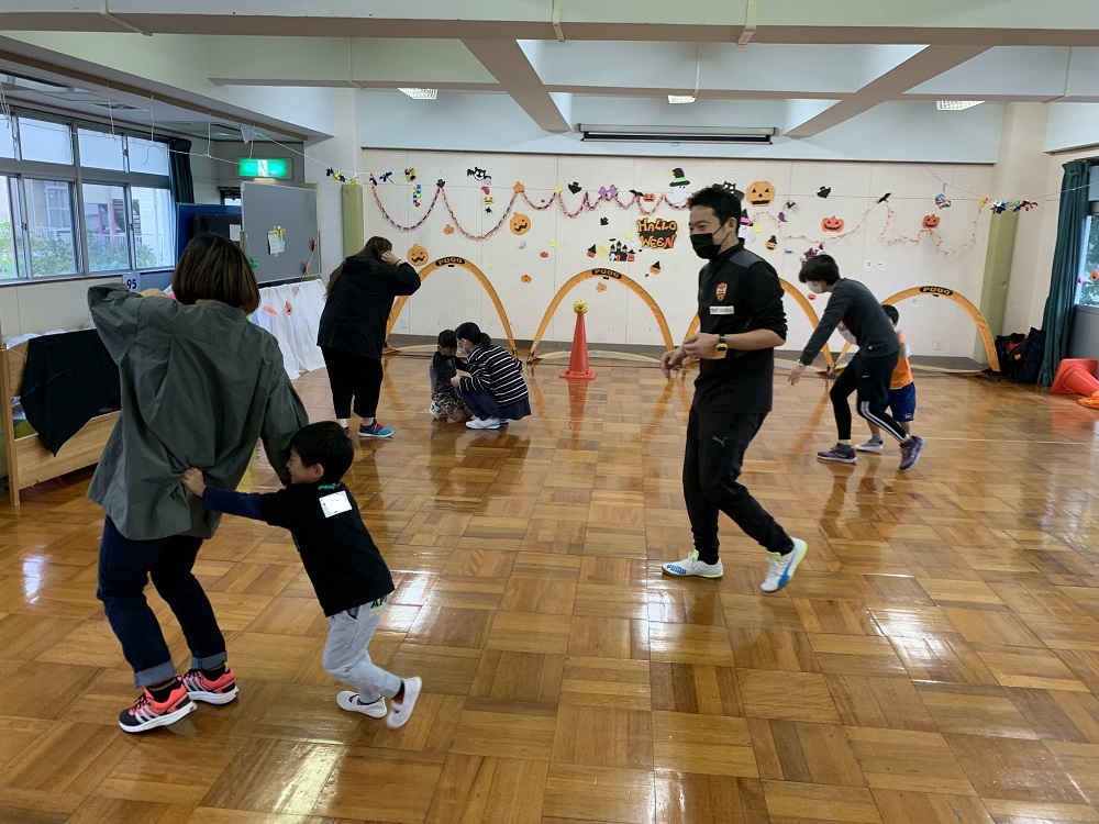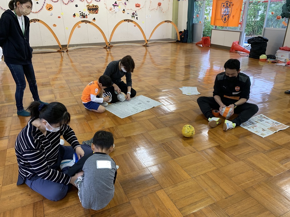 静岡市、服織児童館、エスパルスが共同で行う、エスパルスハロープロジェクト事業「親子ふれあい運動教室」が10月31日(日)に開催され、松尾大介コーチ、森田祐史コーチの2名が参加しました。
