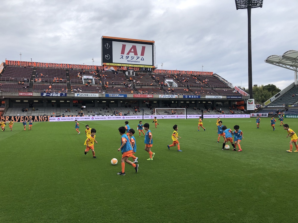 11月6日(土) IAIスタジアム日本平にて、2021明治安田生命J1リーグ第34節 清水エスパルスvs 北海道コンサドーレ札幌戦にて、スクールの1年生を対象に前座試合イベントを実施し、92名のスクール生に参加いただきました。