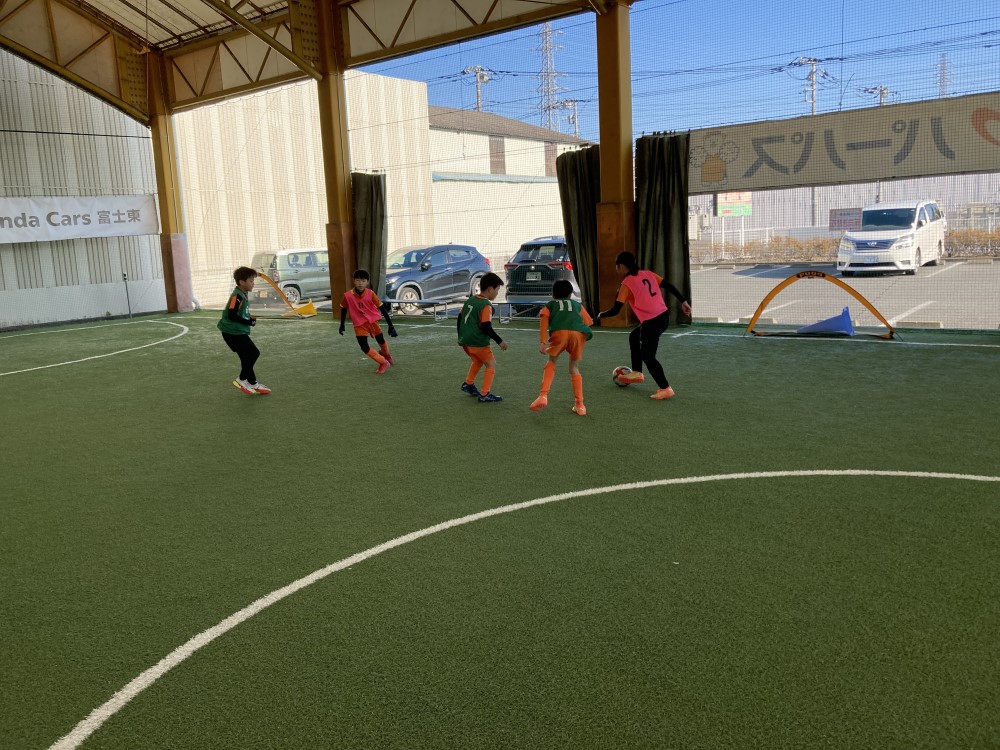 1月10日(月・祝)にエスパルスドリームフィールド富士にて『初蹴りサッカー大会』を実施し、富士スクール・田子浦スクール・富士宮スクール・御殿場スクールに在籍する年中児~小学2年生のスクール生17名、小学3~6年生のスクール生14名が参加してくれました。