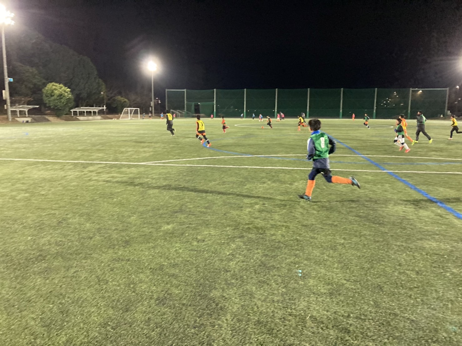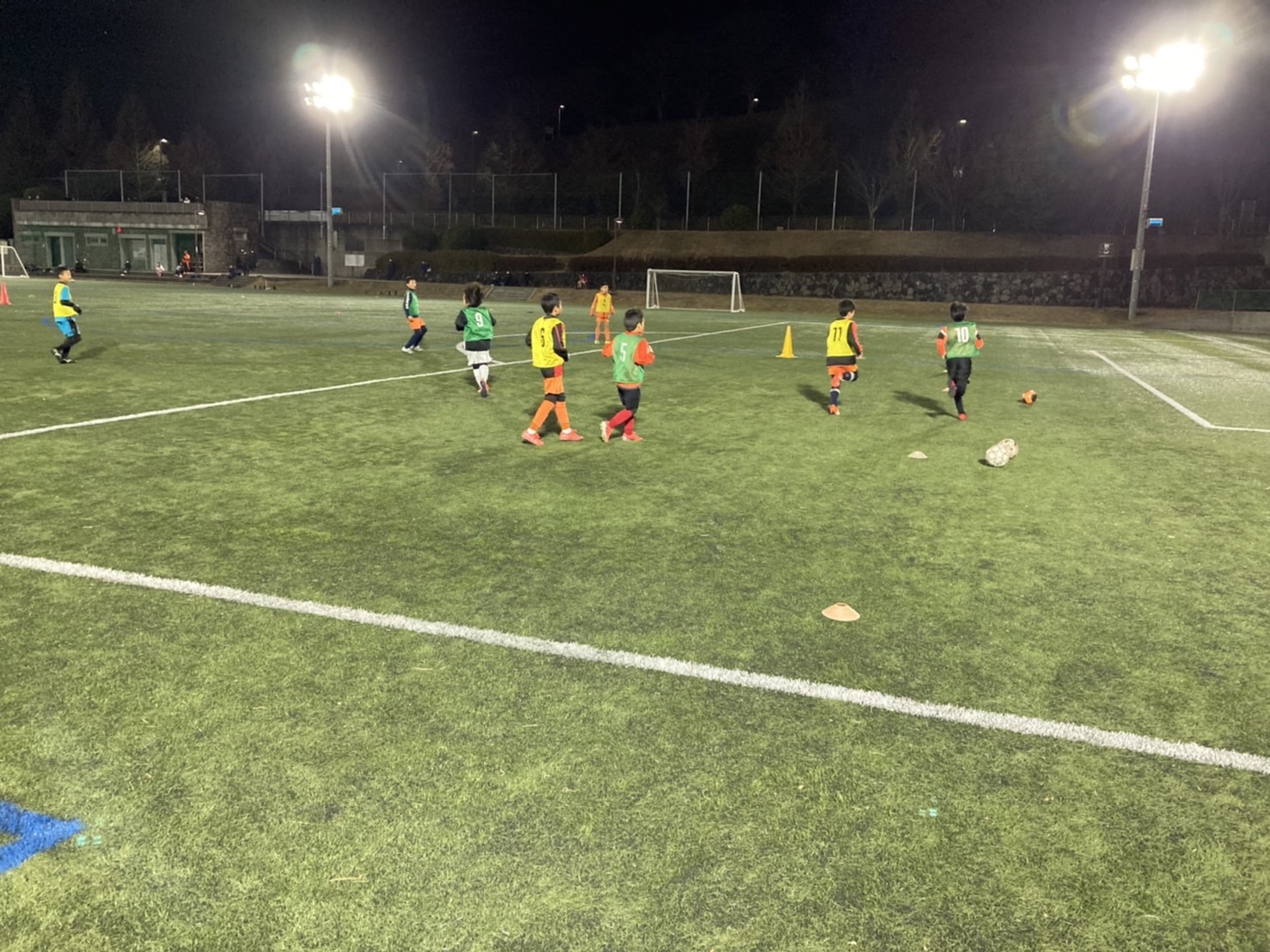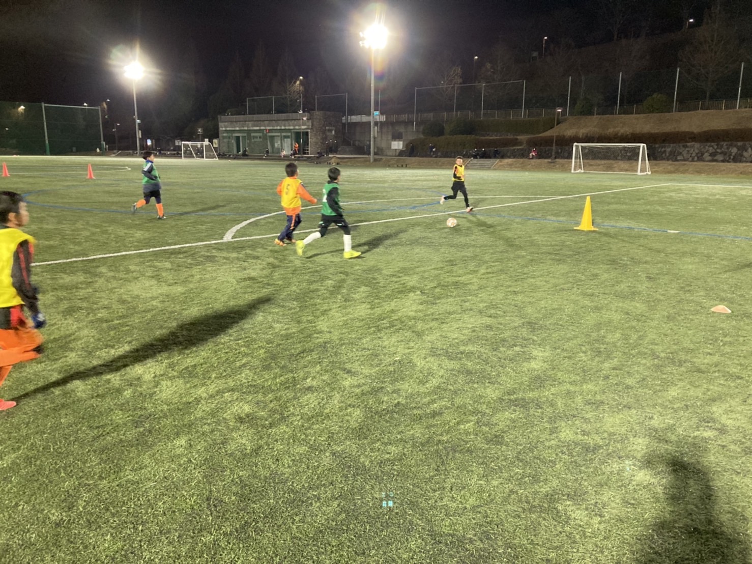 寒い中での活動のために、ウォーミングアップから身体を温めながらパフォーマンス向上とケガ予防を考えて、ステップワークからコアトレーニングとムーブメントプレパレーションを行いました。自分の身体をスムーズに動かすことが目的でしたが、柔軟性が低いことや間接周りが硬かったことで動きがぎこちなくバランスよく動かせなかった子が多かったです。これから学んだことを取り入れることを期待します!!