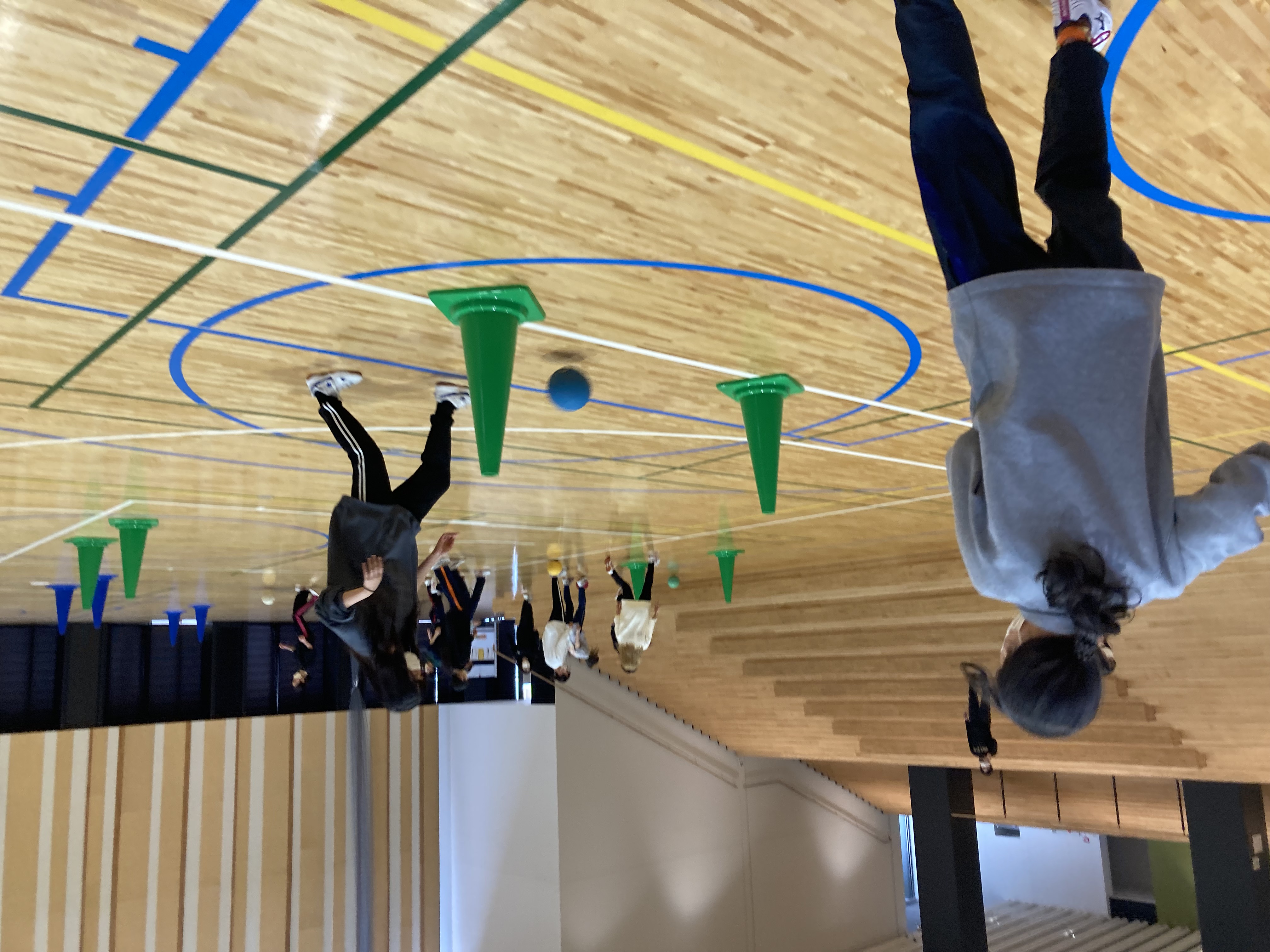 実技を始める前に少しアイスブレイクを入れ、身体と心をほぐしてから「鬼ごっこ、動き作り、ボールフィーリング、ゲーム」を進めました。鬼ごっこでは、同じメニューでも少しルールを変えるだけで、鬼も逃げるほうも両方楽しめる内容になることも伝えました。