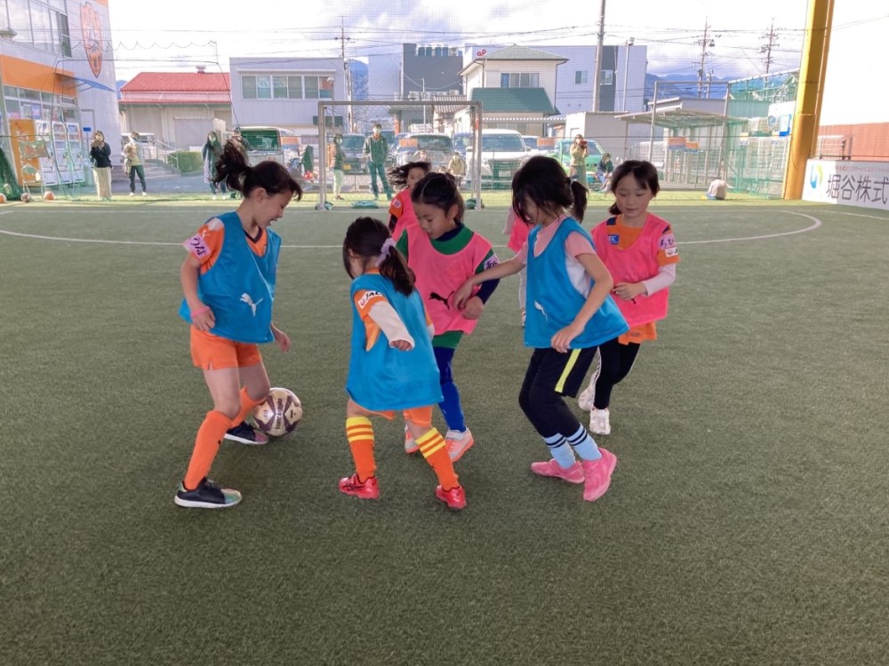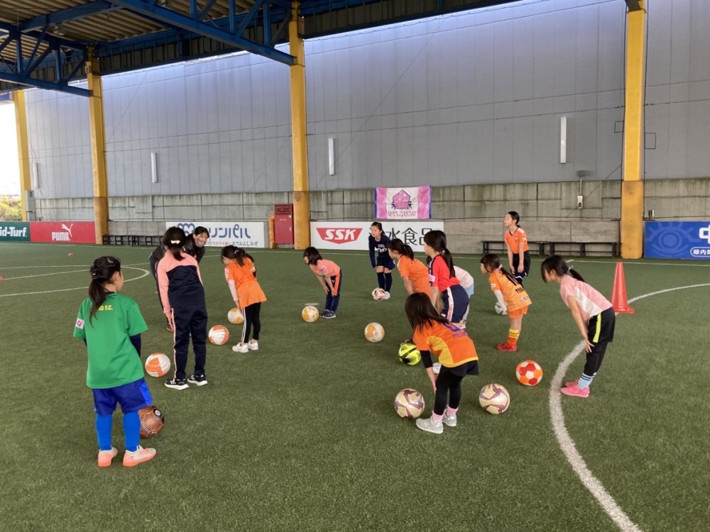 『JFAなでしこひろば清水by清水エスパルス』をエスパルスドリームフィールド清水にて開催しました。今回は年中・年長児5名、小学生8名の選手が参加してくれました。