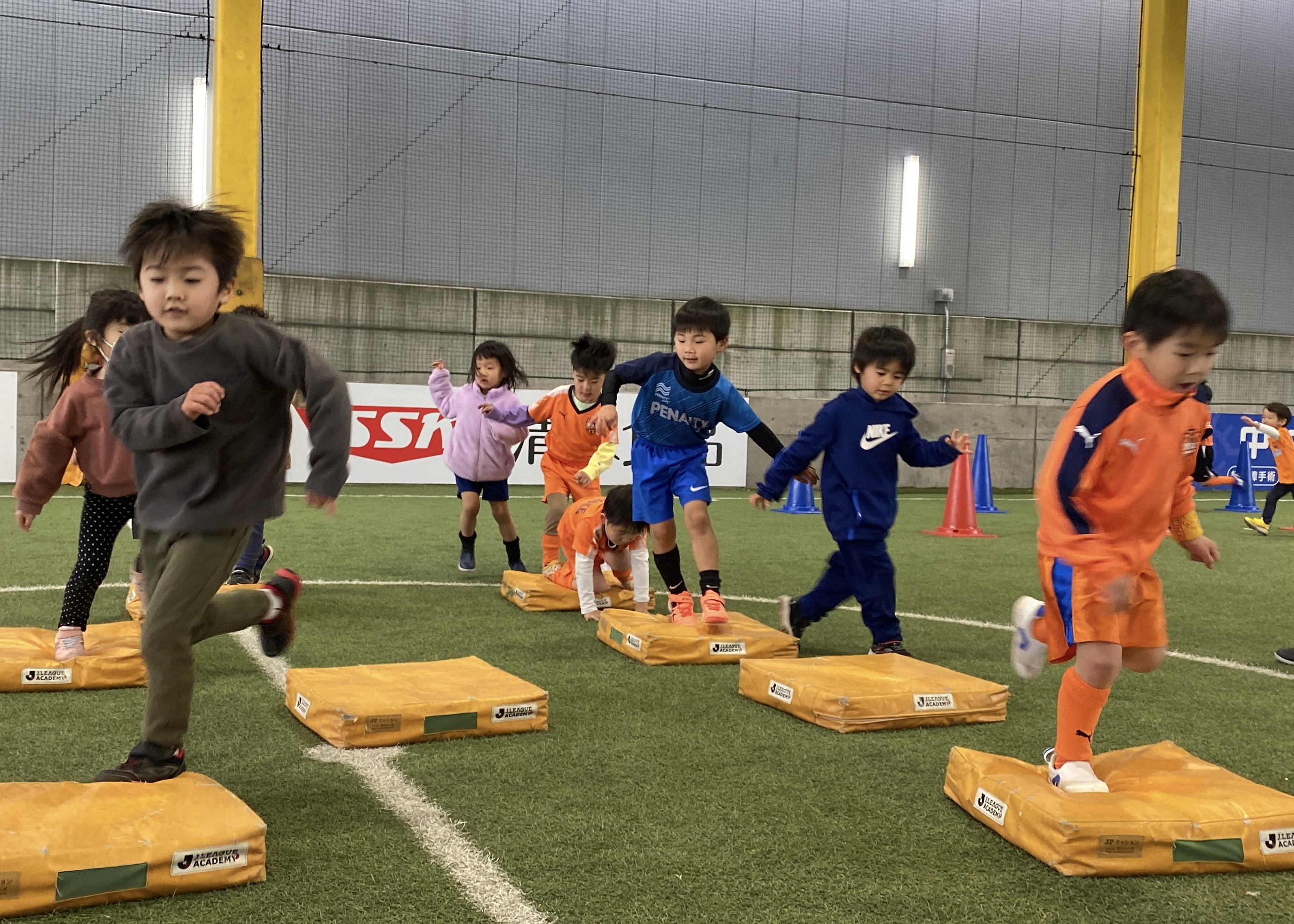 様々な運動やサッカー遊びの経験値を持つ新年中・年長のお友達が集まってくれましたが、安心できる環境の中、楽しく元気に身体を動かすことができたことで、沢山の笑顔が溢れる体験会となりました。