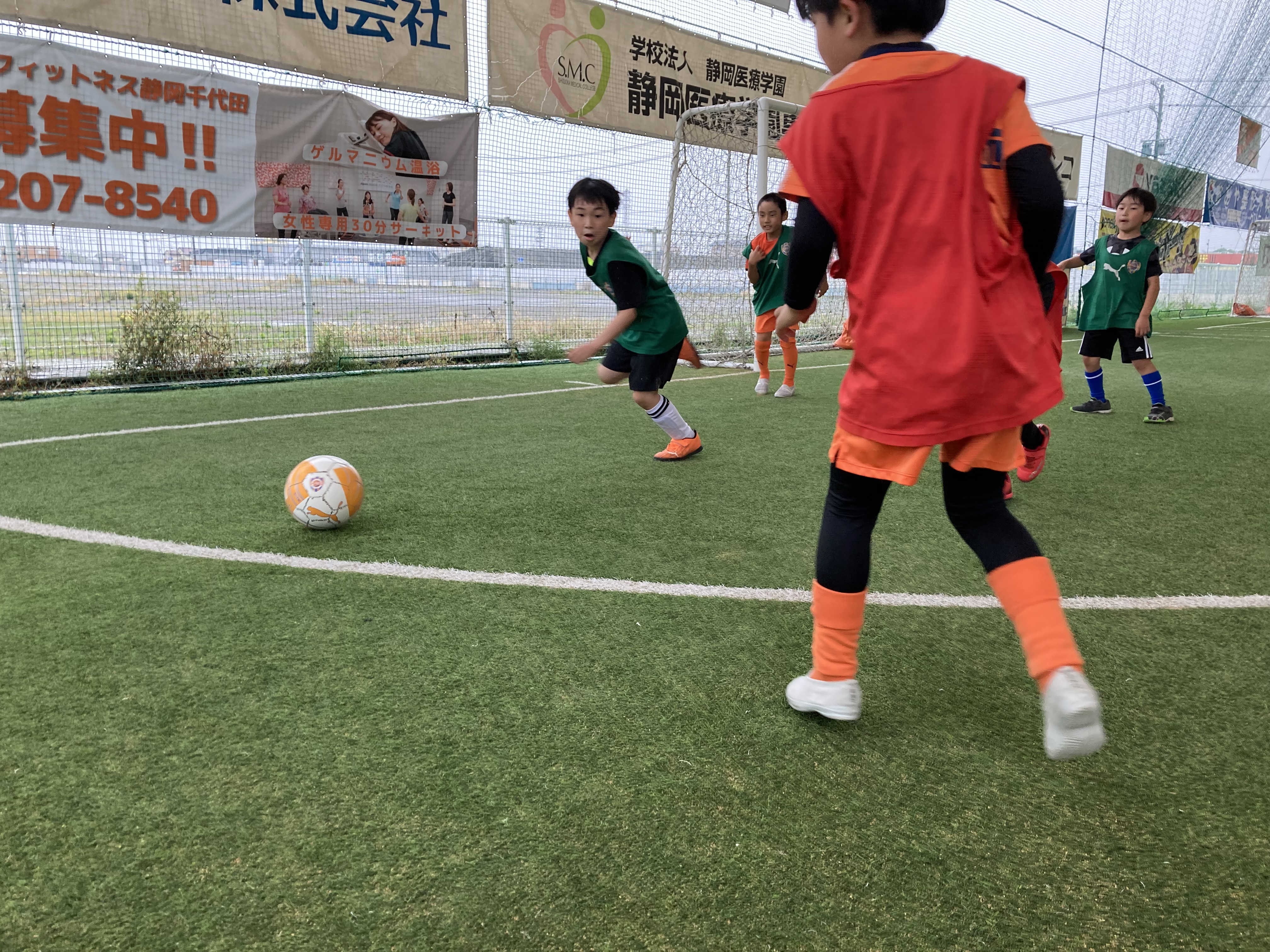試合形式の練習ではボールを運びながら、相手にボールを奪われずにゴールへ進むことを考えて相手との駆け引きの中でプレーすることで、たくさんのゴールが生まれました。