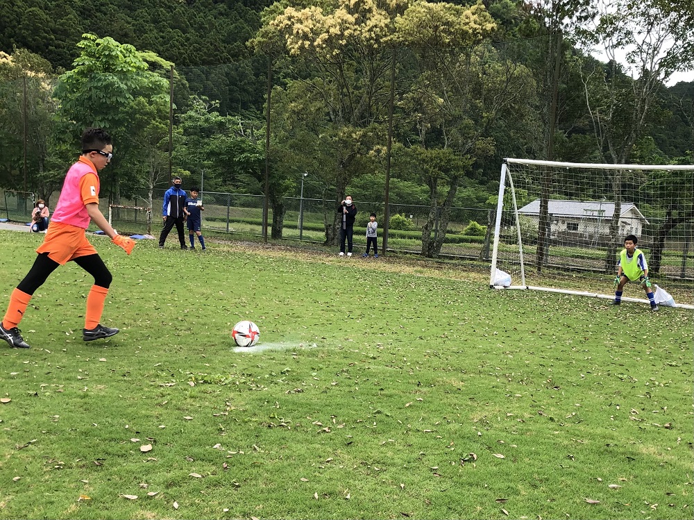 PK戦では1本目では真ん中に蹴ってしまう選手が大半でした。そこで、選手同士でどうしたら点が入るのか考えよう!と意見を出し合い、「キーパーの動きを見たらうまくできるよ」などとスクール生同士でコミュニケーションをとることで、2本目は良いコースに蹴ることができた選手が増えていました。キーパーもコースを読み切り、ナイスセーブの連続でした。