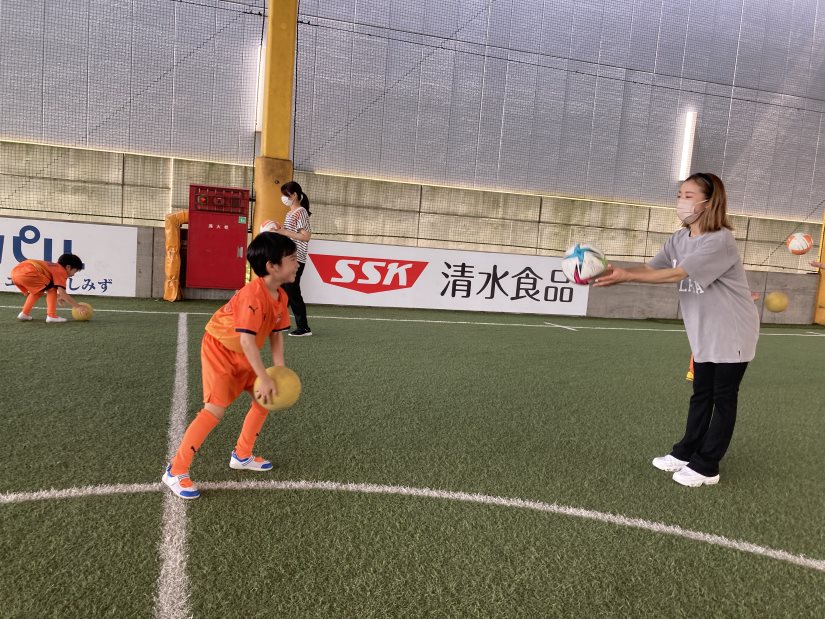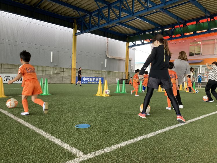5/8(日)エスパルスドリームフィールド清水にて、「親子うんどう教室」を実施しました。年中~小学2年生のスクール生とお母さんを中心に参加しました。