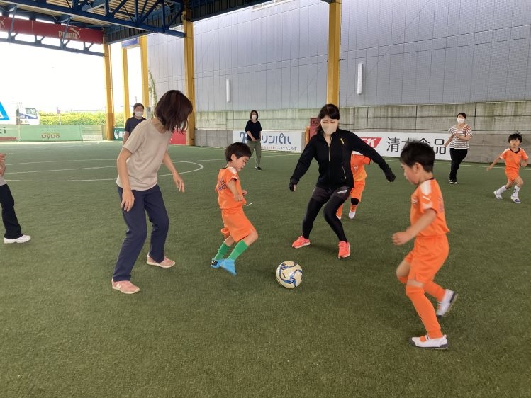 いつもはピッチの外からスクール生を応援しているお母さん。そんなお母さんにも、スクール生と一緒に運動やサッカーをしてもらい、体を動かすことの気持ちよさや、サッカーの楽しさを感じてもらいたい!と企画したこのイベント。それだけでなく、親子でコミュニケーションをとる良い機会となったようです。